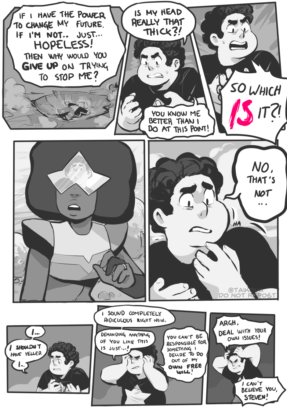I think what I like most about this comic is just how vividly you portray Steven fighting with himself, in his expressions, body language, and dialogue, it's amazing. Also, the art is fantastic.