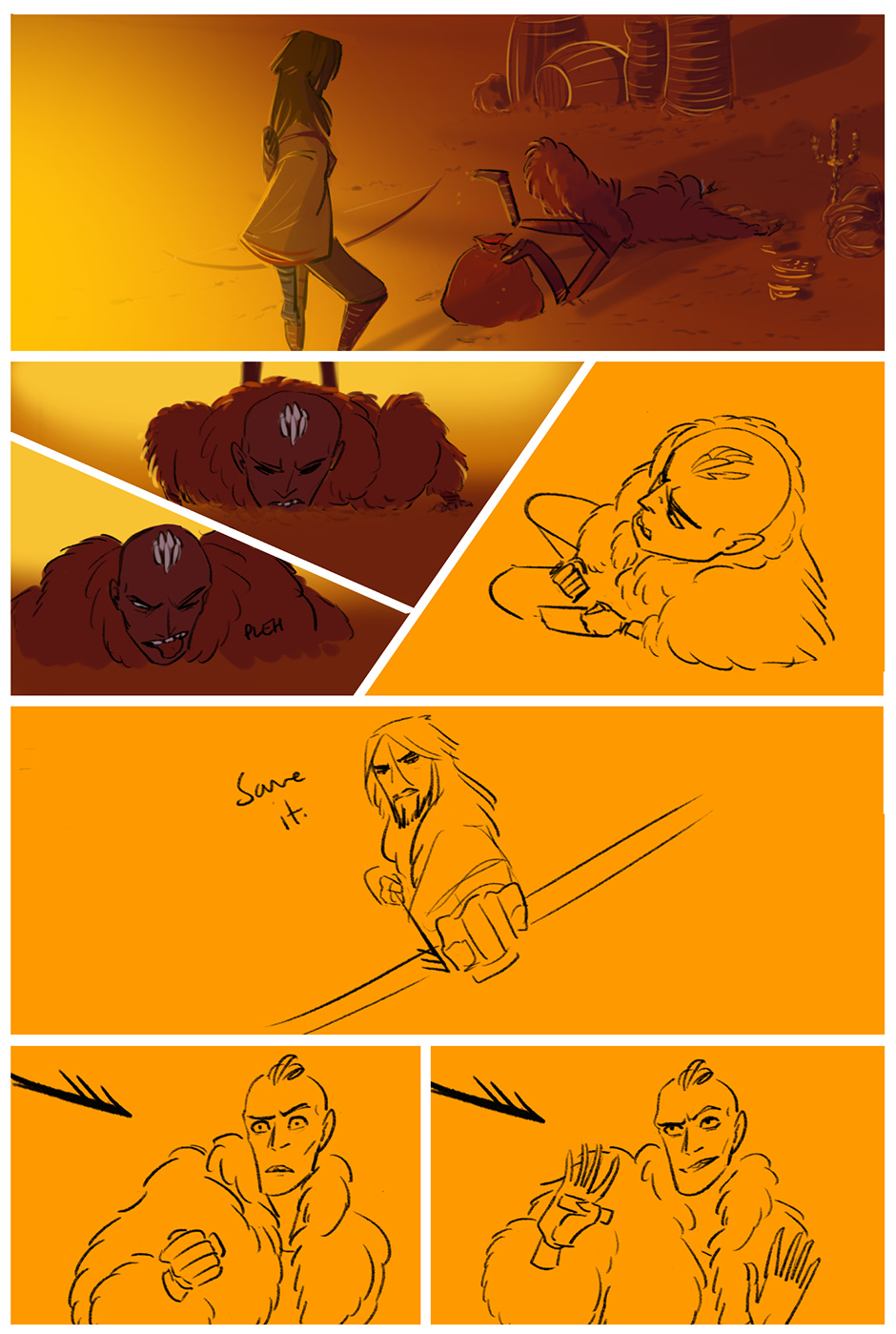 I focus most of my energy on getting expression and gesture right. If those things are nailed down, I'm happy to move on to different stages. Body language is super cool and I will always choose an expression over dialogue-- especially for characters like Serge.