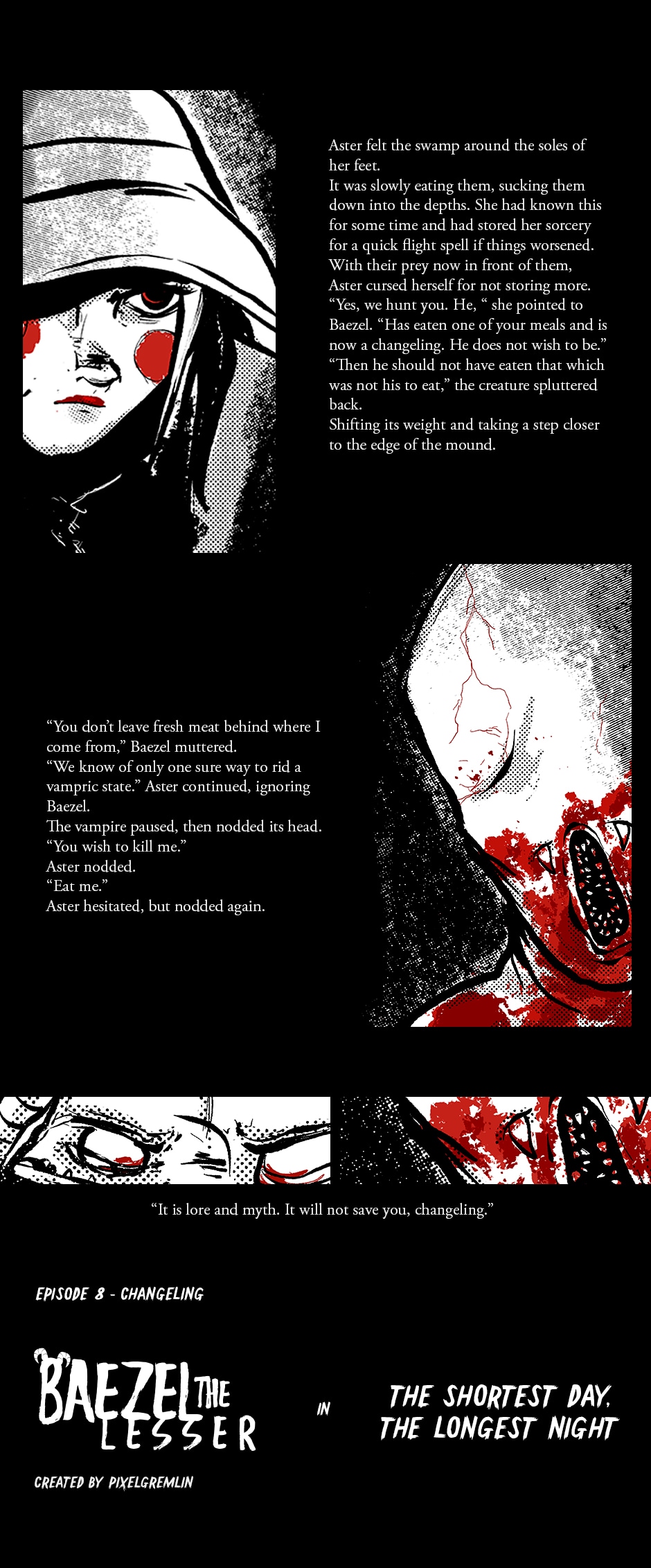 Baezel is a Lesser Demon with bottomless hunger and a knack for attracting trouble. His misadventures cross paths with witches, demons, and other creatures of folklore and fairytales - bringing to life dark tales of mischief and mayhem.