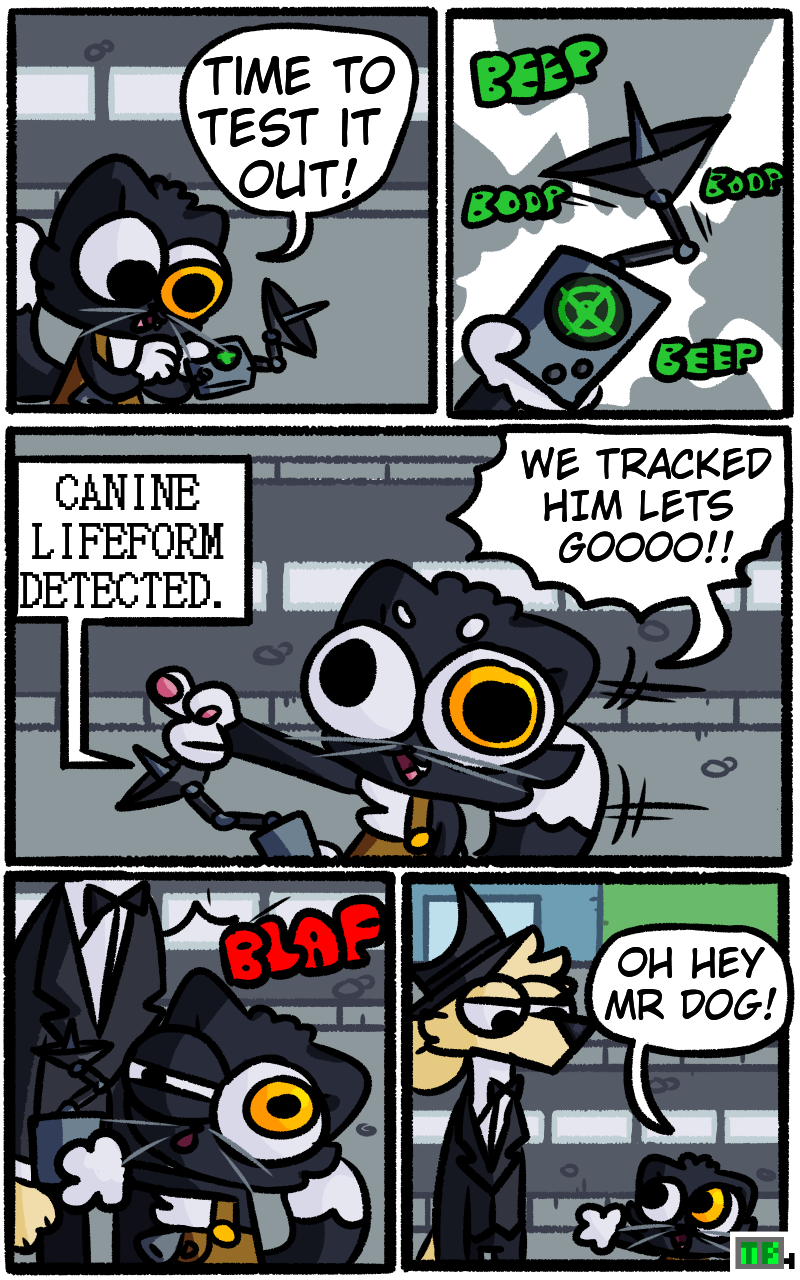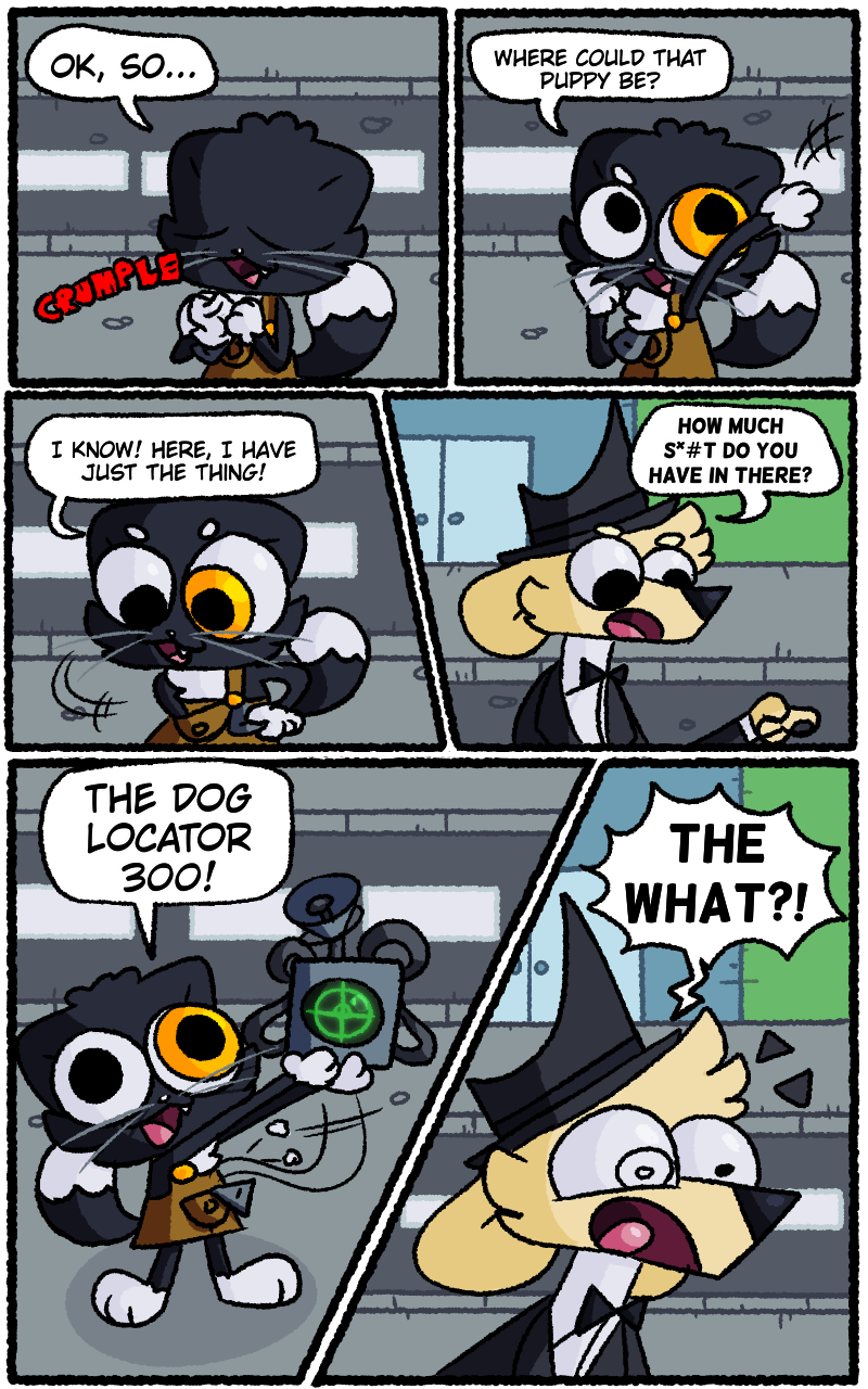 Dirk uses a cool gadget to find Dirk's nephew _________________________________ Also, as you may have noticed, I'm using new fonts That is because i'm now using medibang to make the comics.