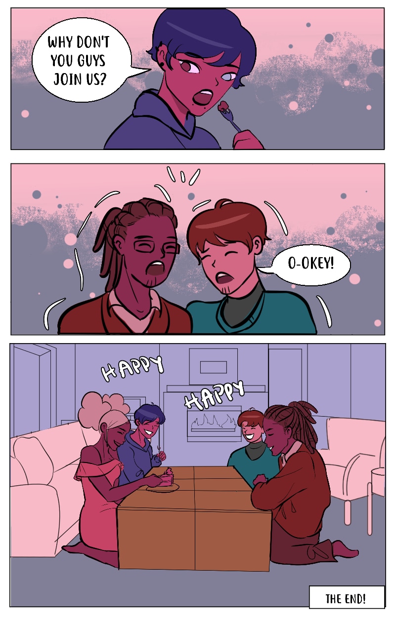 This is officially suppose to be last chapter of my comic! But since its so loved I will try to add more cute chapter where they adopt a real cat(not a hot enby witch)!