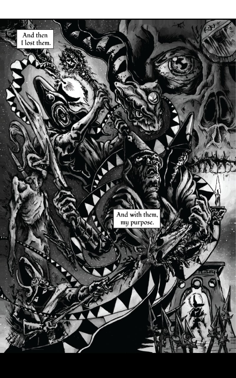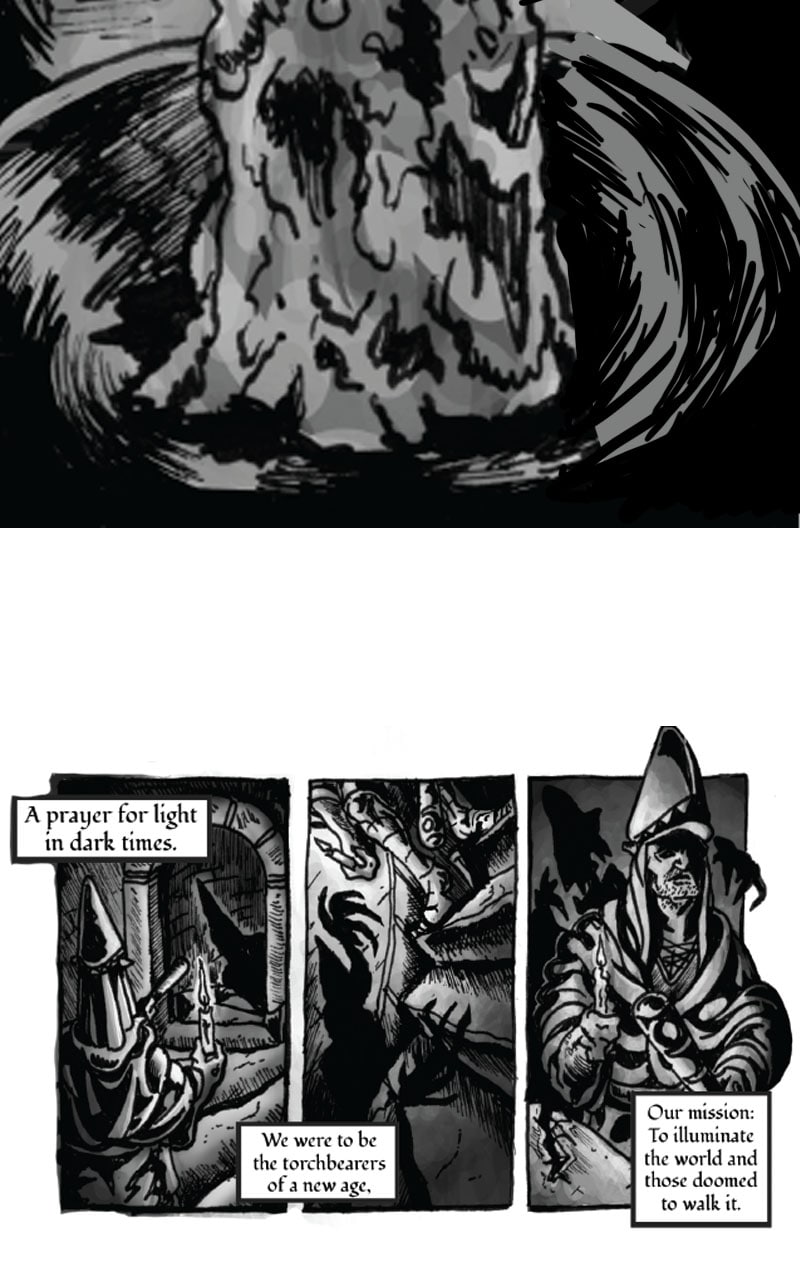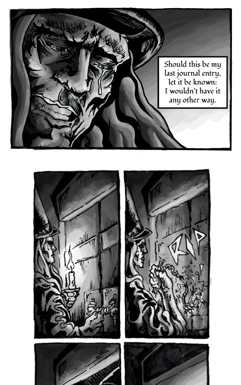 At one time the mere whisper of his name could bring armies to surrender. He traveled the world, faced the might of Heaven and Hell, and led his people into a new golden age. Those days are long gone now, and Kalus has secluded himself in the wasteland hoping to live out the last of his days in solemn contemplation. That all changes when a Stranger arrives and begins chasing him across the desert. This mysterious stranger will stop at nothing until he is dead, and a weary Kalus now seeks refuge in a Lighthouse from his past. Find out what happens in "THE SMELL OF HOME"!