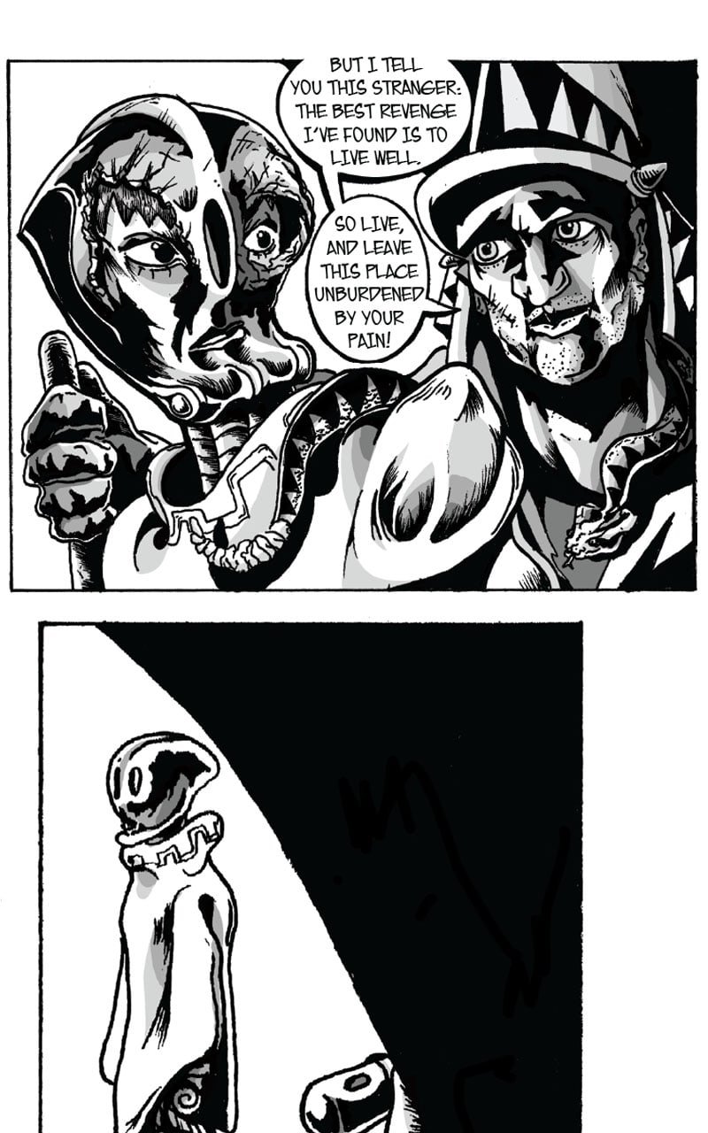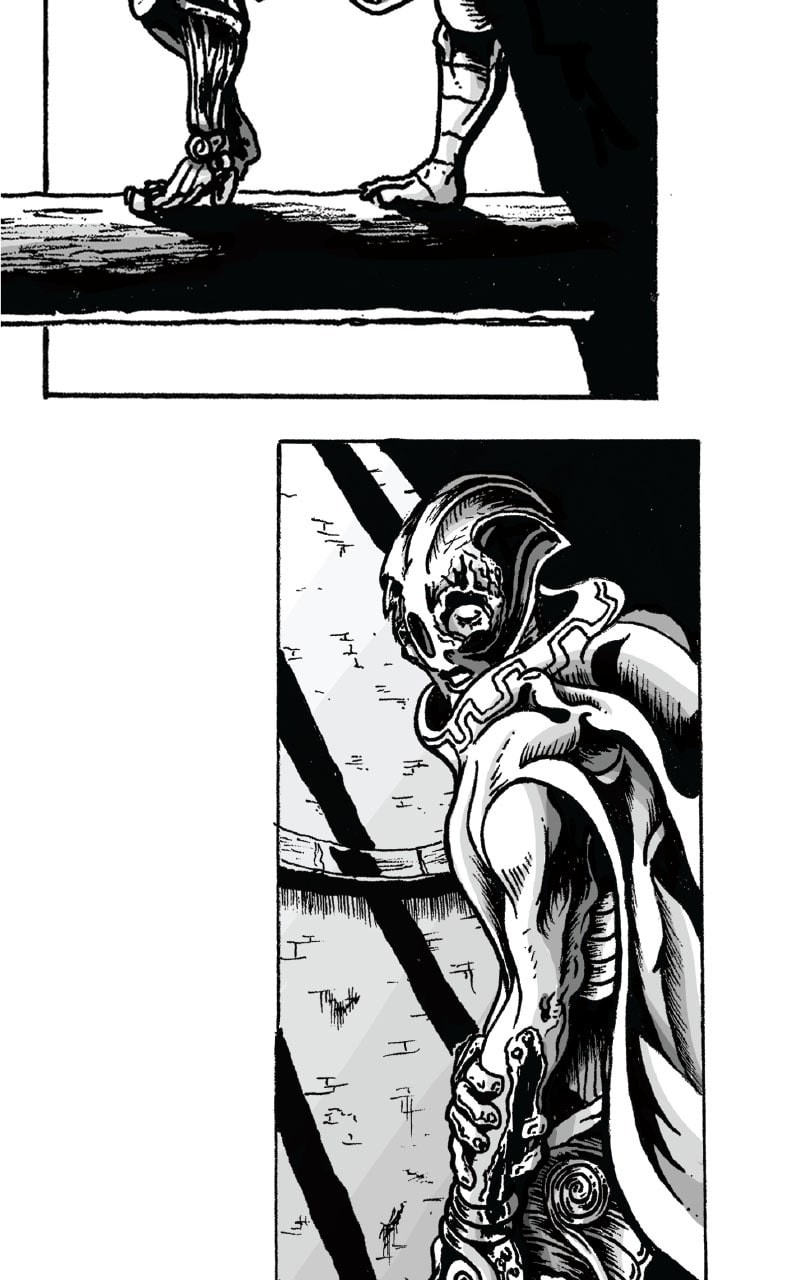 At one time the mere whisper of his name could bring armies to surrender. He traveled the world, faced the might of Heaven and Hell, and led his people into a new golden age. Those days are long gone now, and Kalus has secluded himself in the wasteland hoping to live out the last of his days in solemn contemplation. That all changes when a Stranger arrives and begins chasing him across the desert. This mysterious stranger will stop at nothing until he is dead, and a weary Kalus now seeks refuge in a Lighthouse from his past. Find out what happens in "THE SMELL OF HOME"!