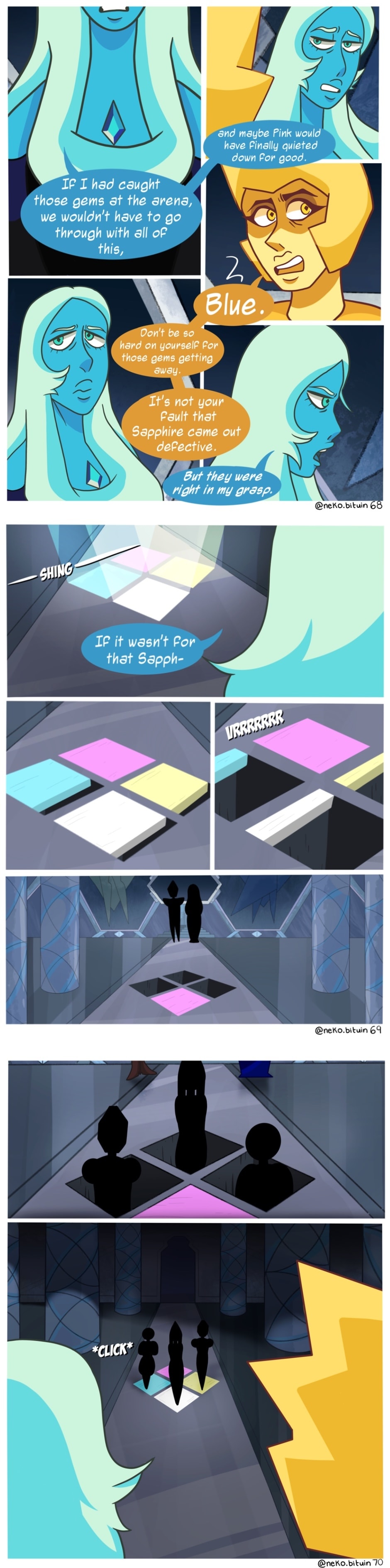 In this Steven Universe AU, Ruby tackles Pearl instead of pushing Sapphire out of the way in the episode “The Answer”. Their collision results in the fusion, Rhodonite, and changes the whole course of the Rebellion. Follow the story of the challenges they face during the Rebellion and the gem-war.