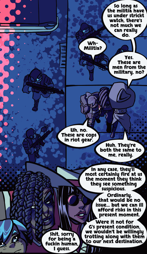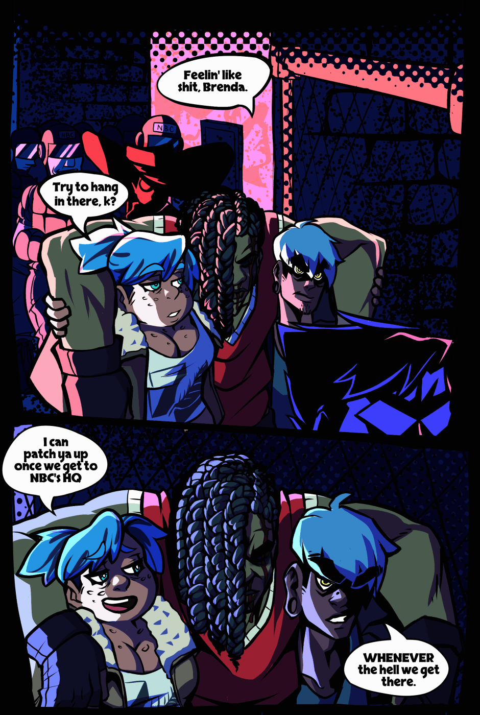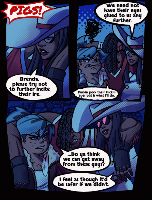 Our heroes appear to be walking away from some kind of bloody encounter.