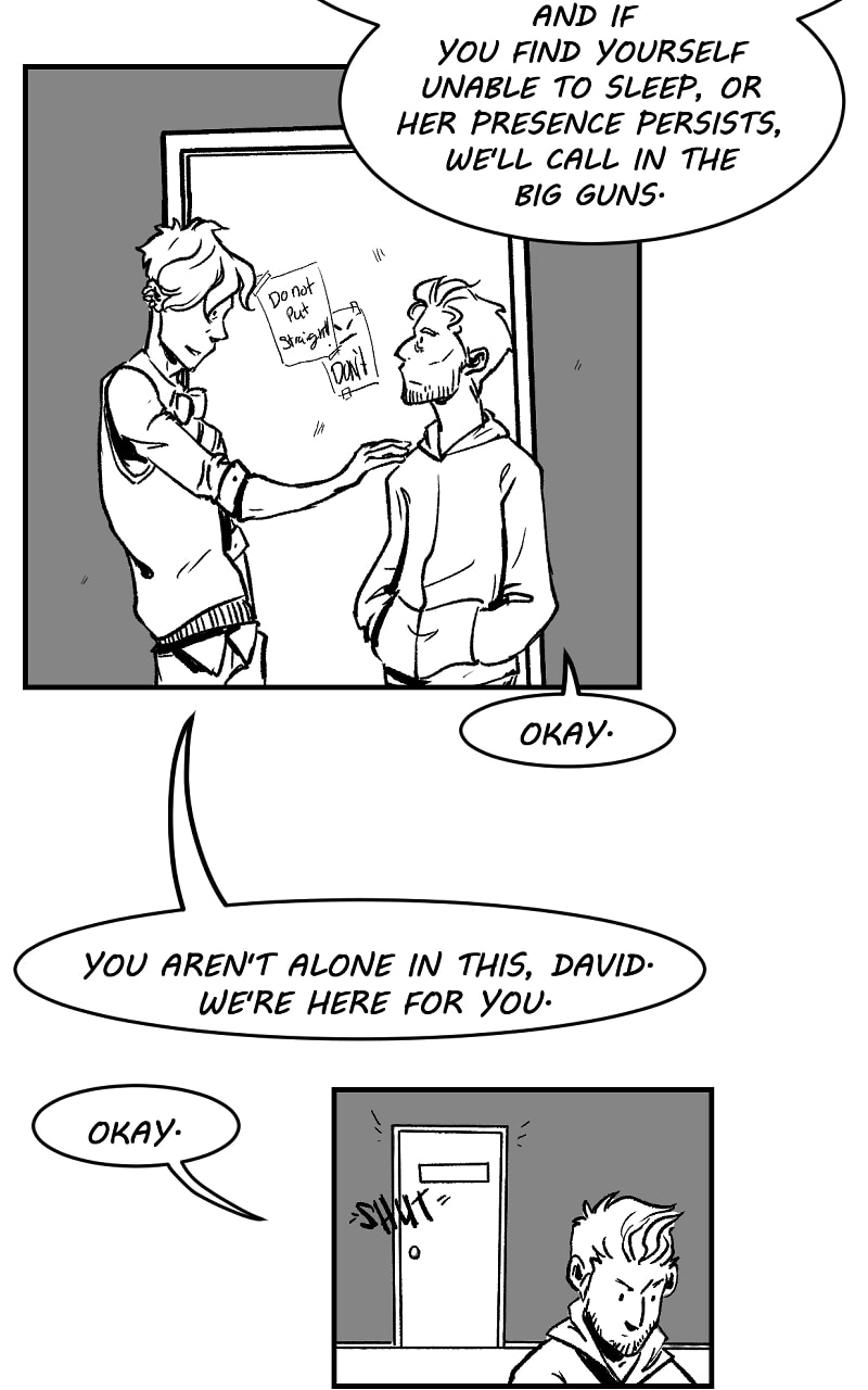 Angry coffee bean (David) can see ghosts, and talk to them too, though he'd much rather be wallowing in bed. Being a consultant for a firm of supernatural beings that hunt other supernatural beings doesn't really help him avoid talking to the recently departed either. Maybe if newbie Hunter and recently turned vampire Geo would just leave him alone, he could struggle with his life in peace.