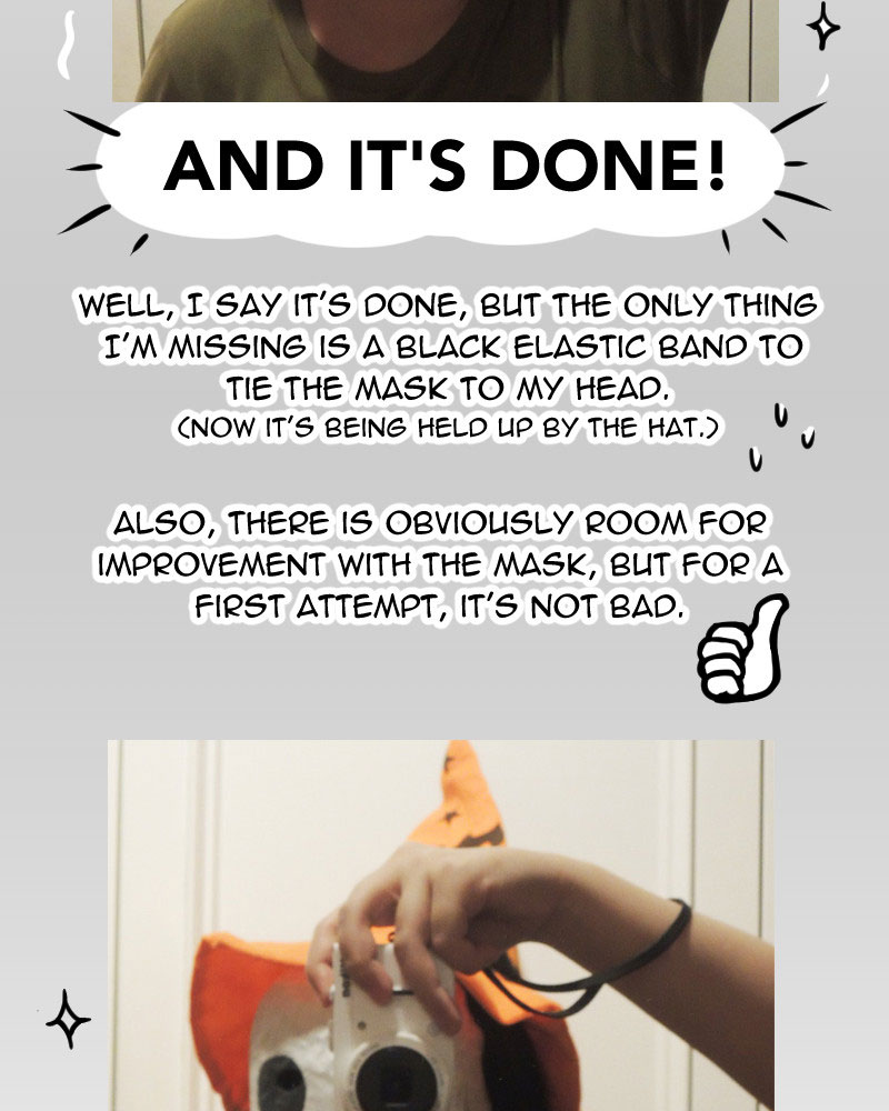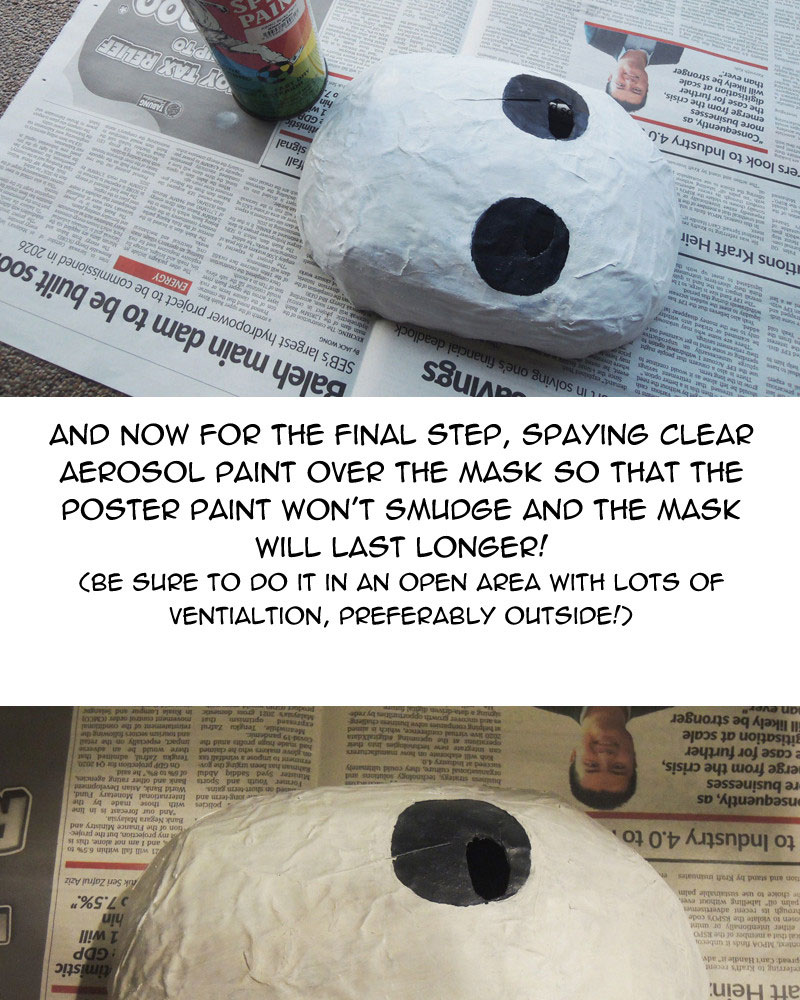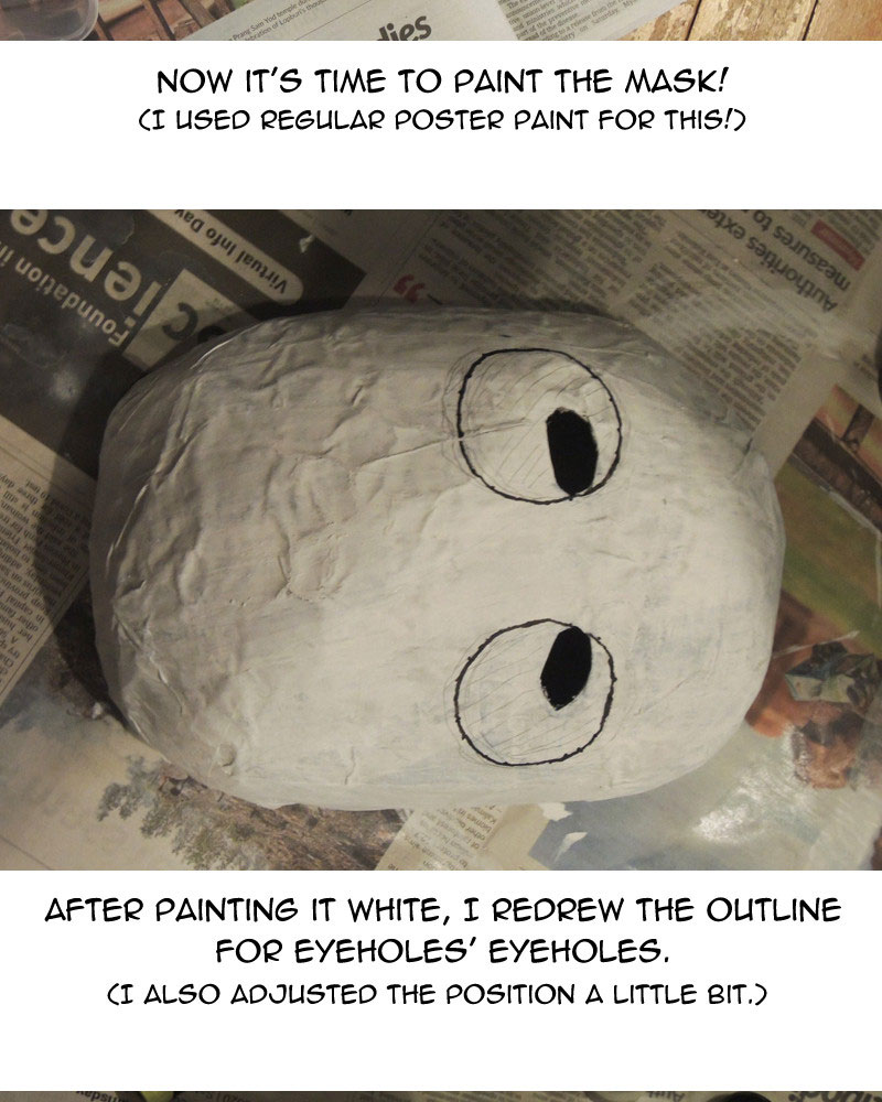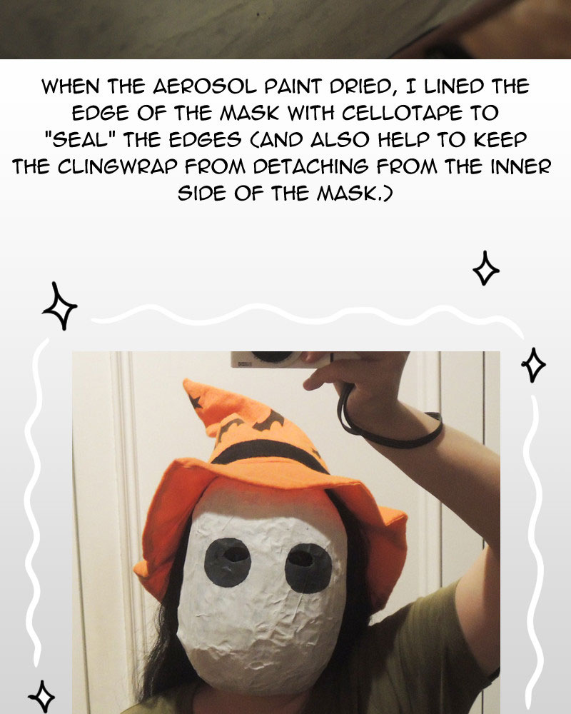 As for possible improvements to the mask, I could use sandpaper to smoothen out the surface, or fill the rough parts in with paper clay, but those would take time and effort. Overall I'm happy with what I made in the end.