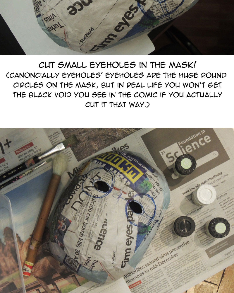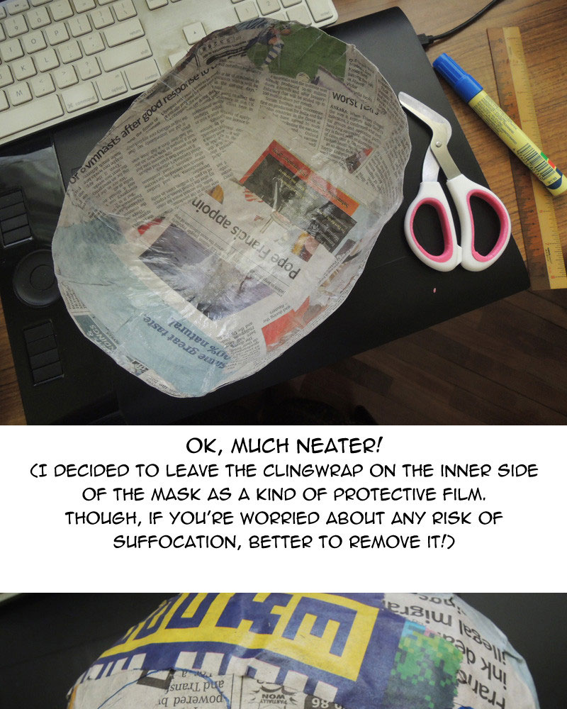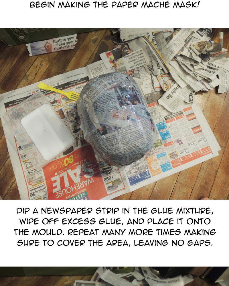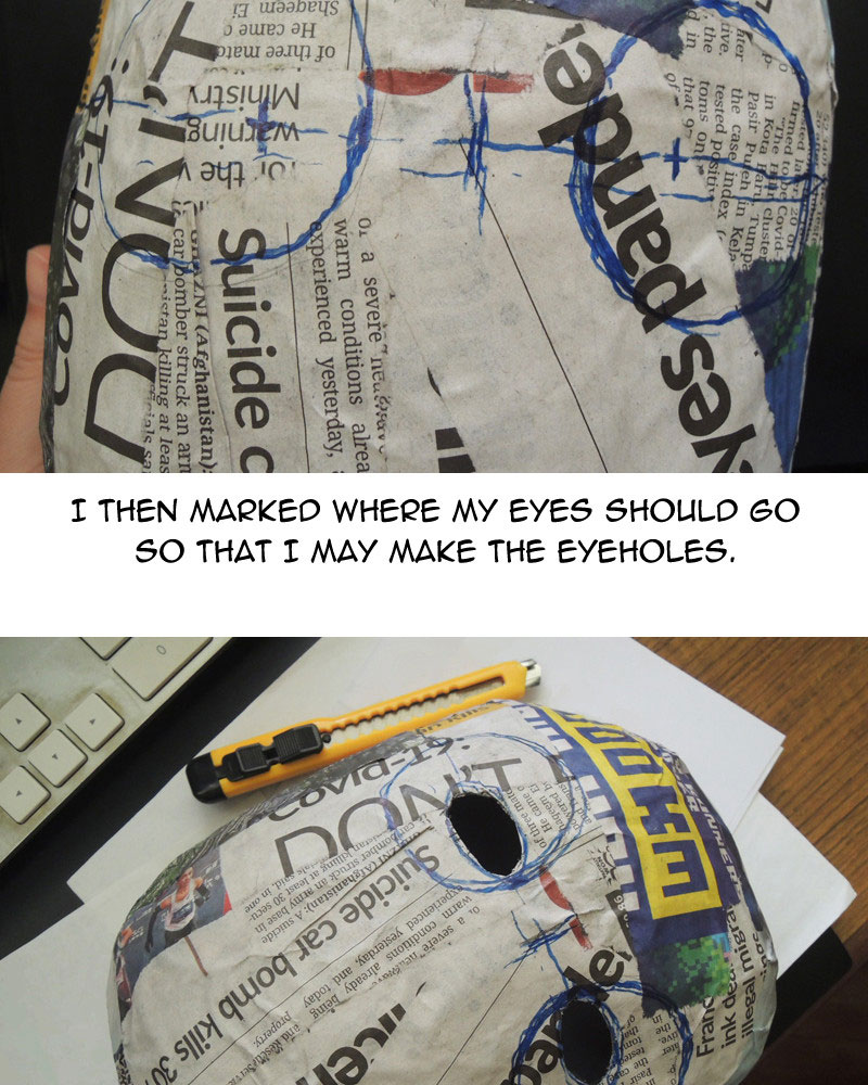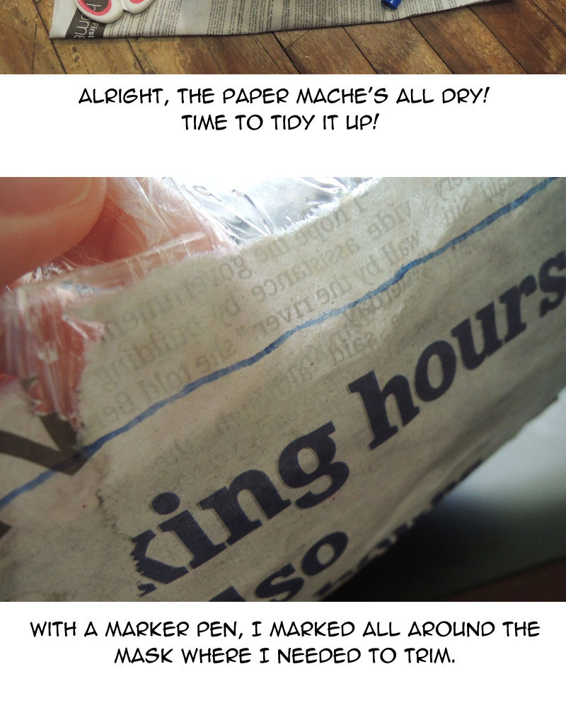 As for possible improvements to the mask, I could use sandpaper to smoothen out the surface, or fill the rough parts in with paper clay, but those would take time and effort. Overall I'm happy with what I made in the end.