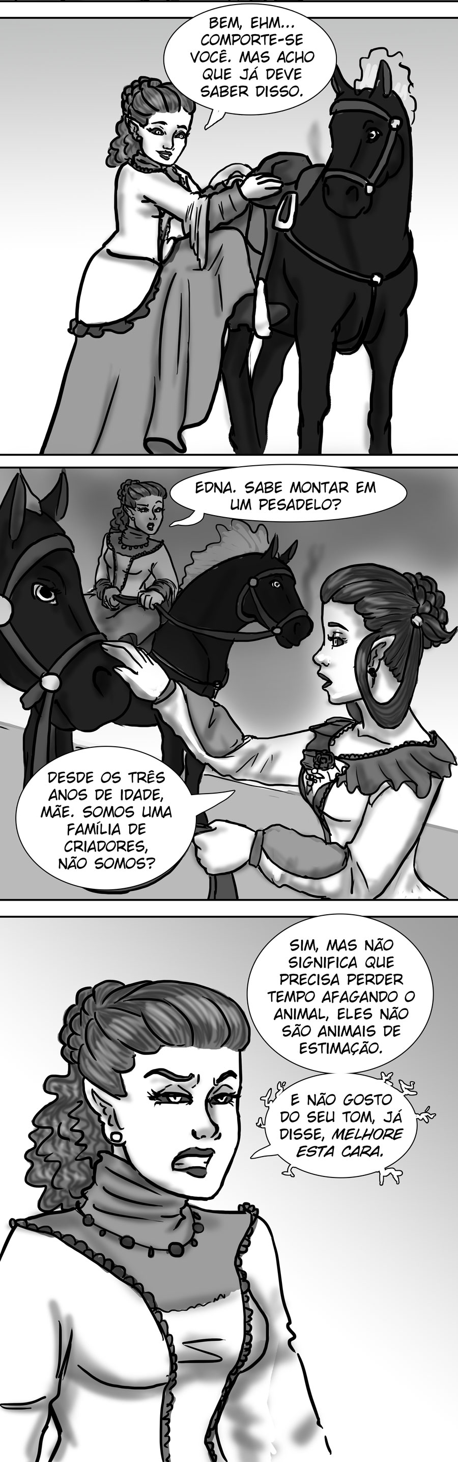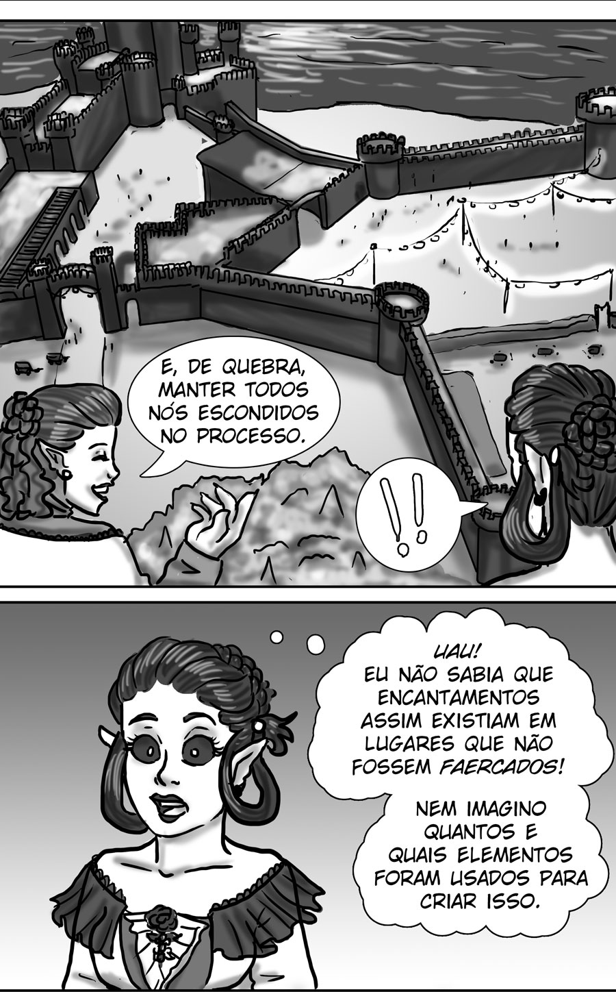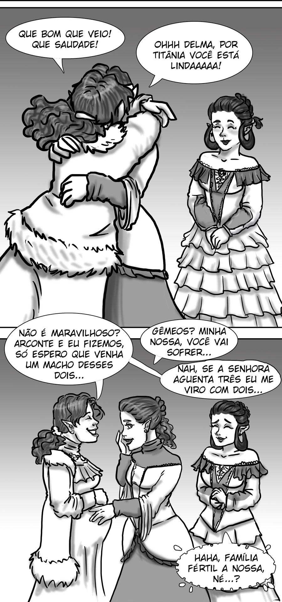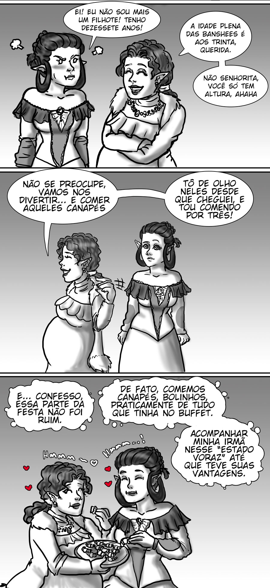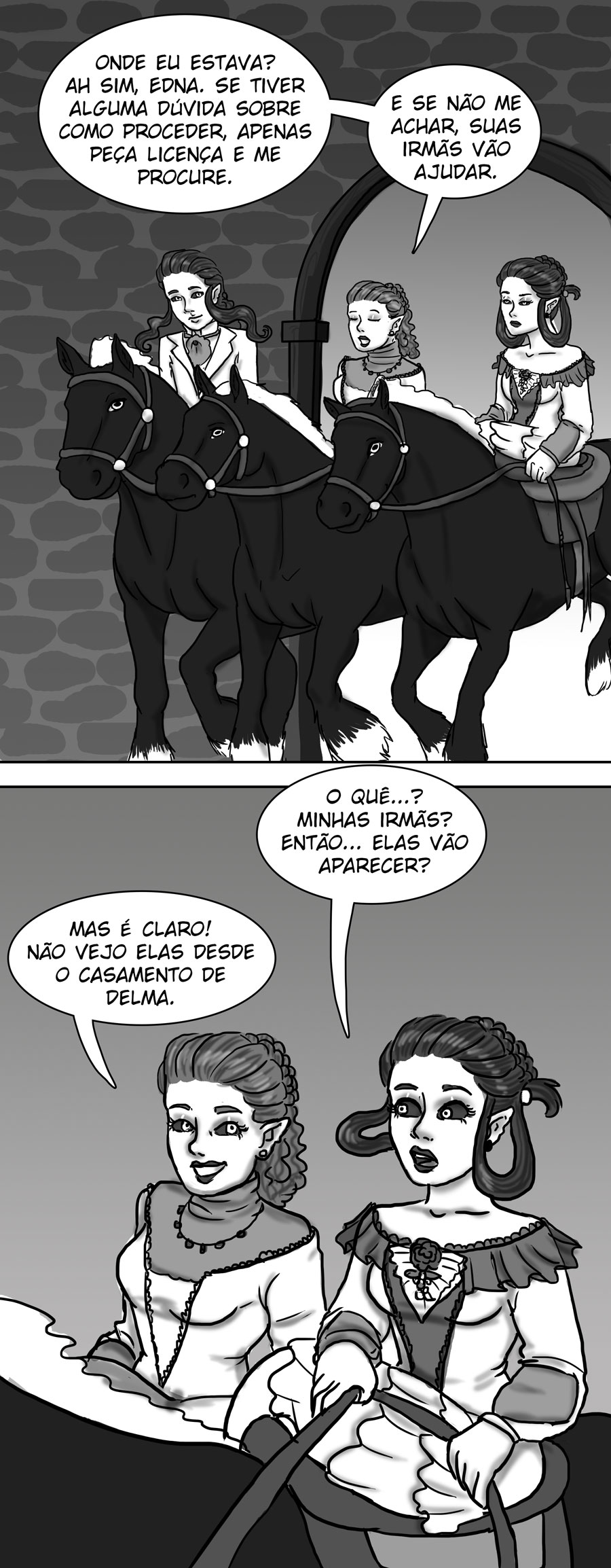 Esse diálogo entre as irmãs foi muito bom. Expôs uma informação do mundo (a idade plena das banshes) de uma forma nem um pouco expositiva, muito bem feito. Sobre outro ponto, eu acho muito bizarro como elas tratam a si mesmas como um tipo de produto. A irmã de Delma provavelmente só queria um garoto porque isso a ajudaria em alguns aspectos, como uma barganha. E esse foi mais um capítulo que mostra como é difícil ser homem 😭😭 kk. As pulseiras/grilhões, o garoto que foi "sequestrado", e também esse racismo por parte delas. Me lembra da governanta da casa de Edna, eu tinha pressuposto que esse tipo de espécie sofresse racismo, mas não tinha base alguma senão a posição dela na casa, mas esse capítulo meio que confirmou, né?