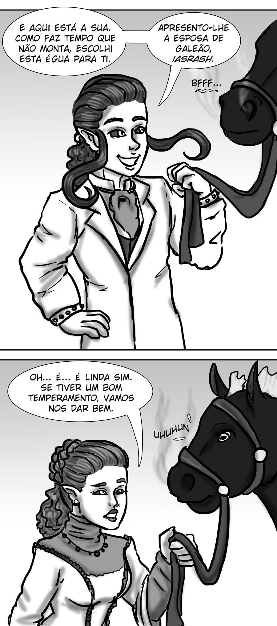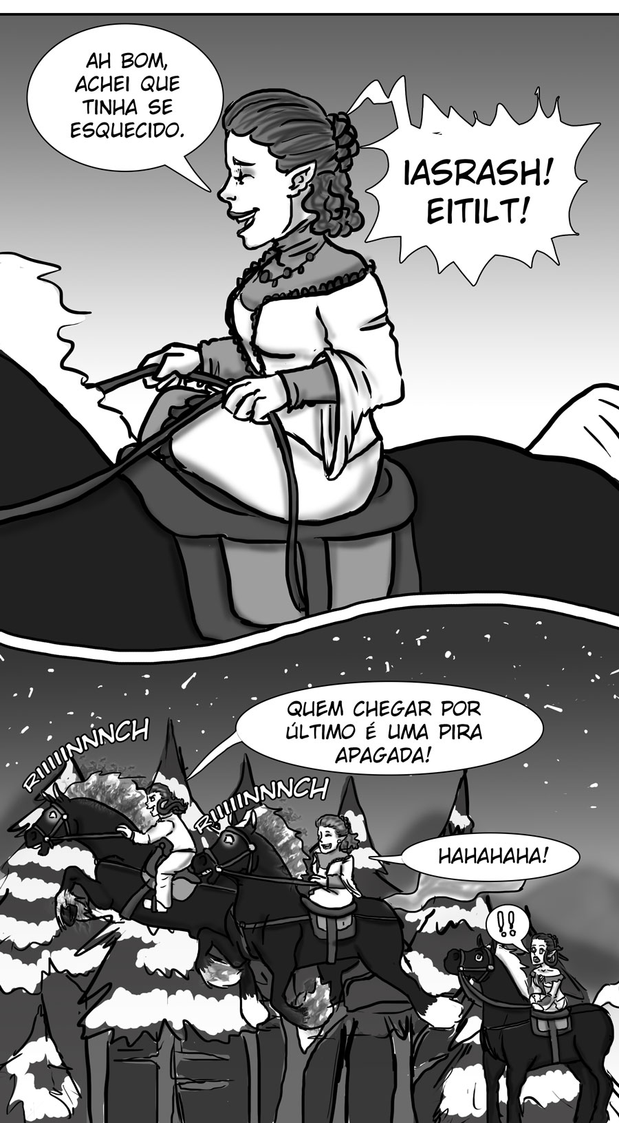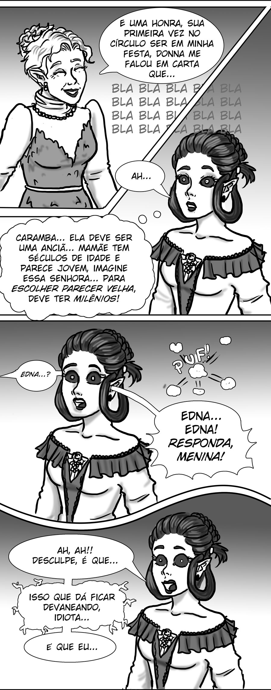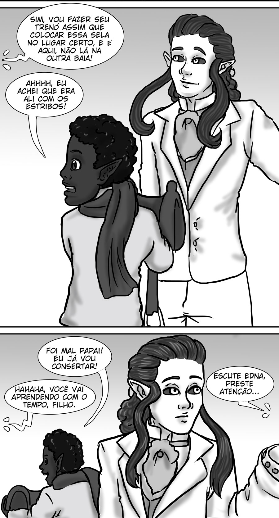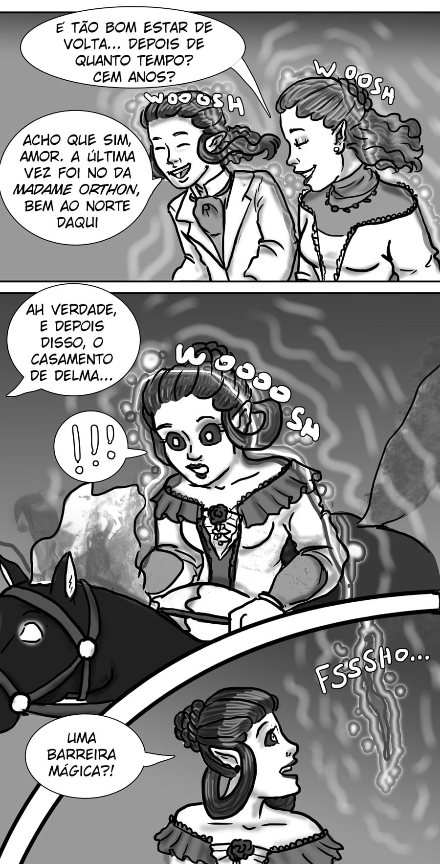 Esse diálogo entre as irmãs foi muito bom. Expôs uma informação do mundo (a idade plena das banshes) de uma forma nem um pouco expositiva, muito bem feito. Sobre outro ponto, eu acho muito bizarro como elas tratam a si mesmas como um tipo de produto. A irmã de Delma provavelmente só queria um garoto porque isso a ajudaria em alguns aspectos, como uma barganha. E esse foi mais um capítulo que mostra como é difícil ser homem 😭😭 kk. As pulseiras/grilhões, o garoto que foi "sequestrado", e também esse racismo por parte delas. Me lembra da governanta da casa de Edna, eu tinha pressuposto que esse tipo de espécie sofresse racismo, mas não tinha base alguma senão a posição dela na casa, mas esse capítulo meio que confirmou, né?