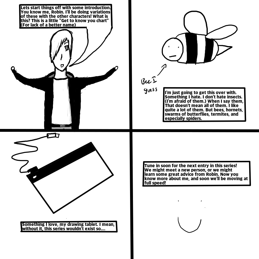 Well, time to get to know me a bit more! You'll definitely realize that this is in a different art style then the first episode. That is because the first episode was made hastily with the intent of showing people I wasn't dead. This is the style I'm going for! Enjoy! :P