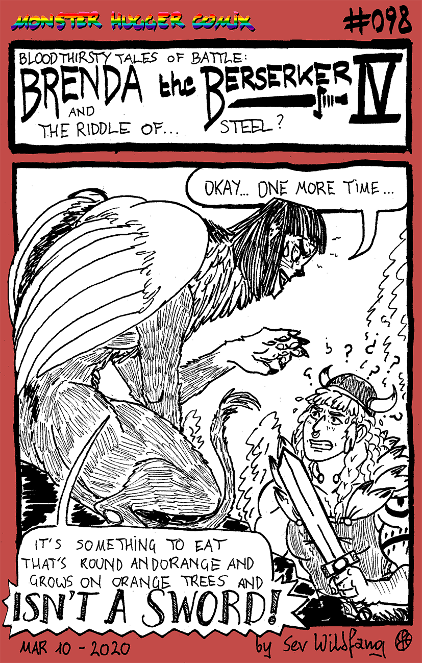Reruns from 2019: the saga of Brenda the Berserker, barbarian and professional herbo.