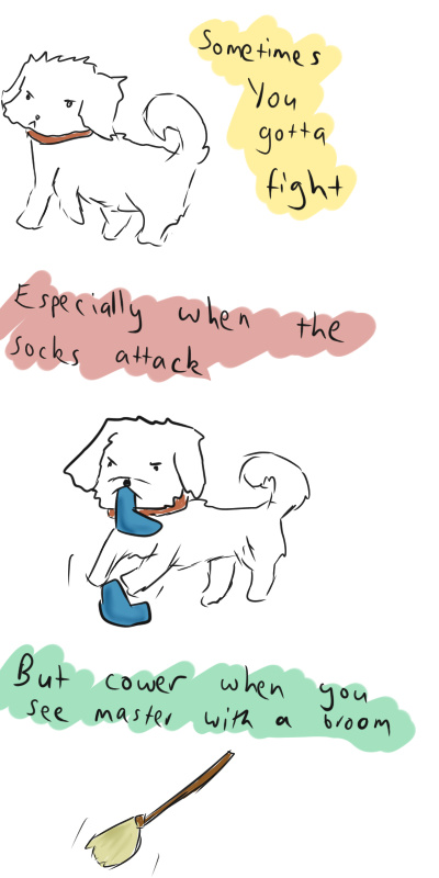 'I just don't like how I can get swept with it and chased around with that brrom' Mutt expresses.