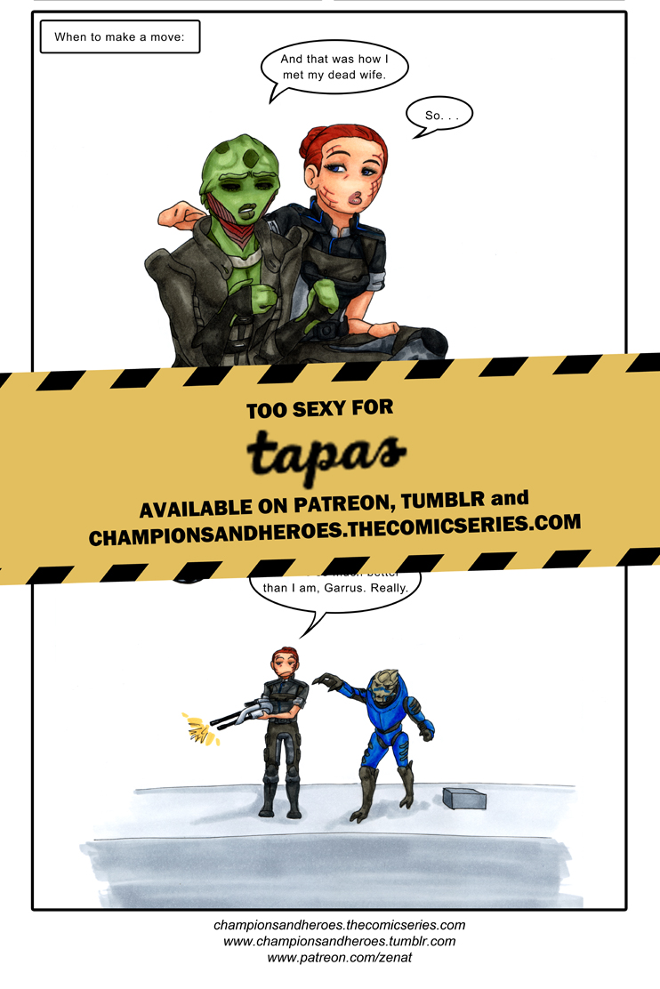 Shepard and dating. It can quickly get really, really awkward. Especially when the dialogue wheel doesn't tell you what, or even how, you are really going to say. Either you wish to say that you are good friends (Kaidan) and Shepard suddenly goes all Lannister twins on you, or you merely want to get to know Jacob and oh dear lord, the voice actress is really flirting, it didn't say it was flirting, I don't want to flirt, what do I do?! D: Made even more awkward by the fact that Mass Effect makes me want to be 100% faithful to Garrus so... yeah. Awkward.