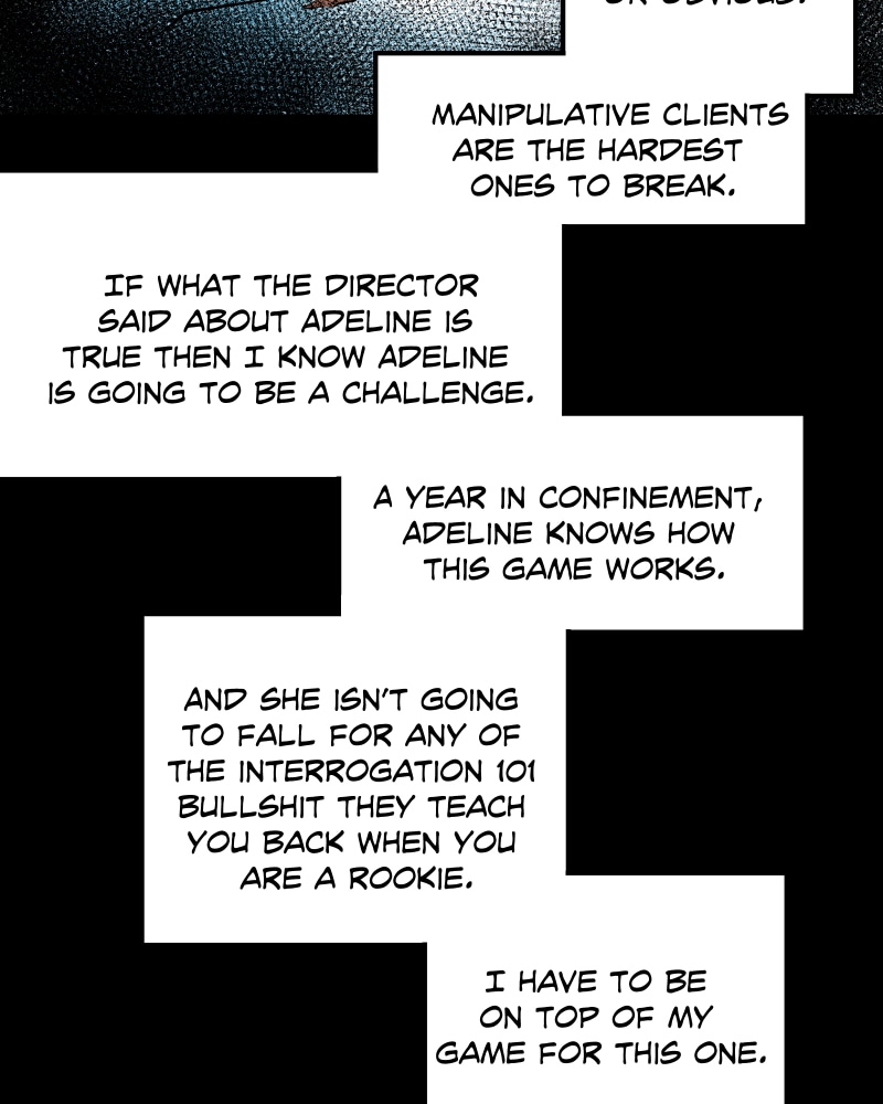 Every interrogator that has spoken to Adeline has mysteriously died. But Lacey Bennett; the newest interrogator assigned to this mass murder case seems to have caught Adeline's interest. Lacey expects a confession, but she quickly realizes she's getting more than she bargained for.