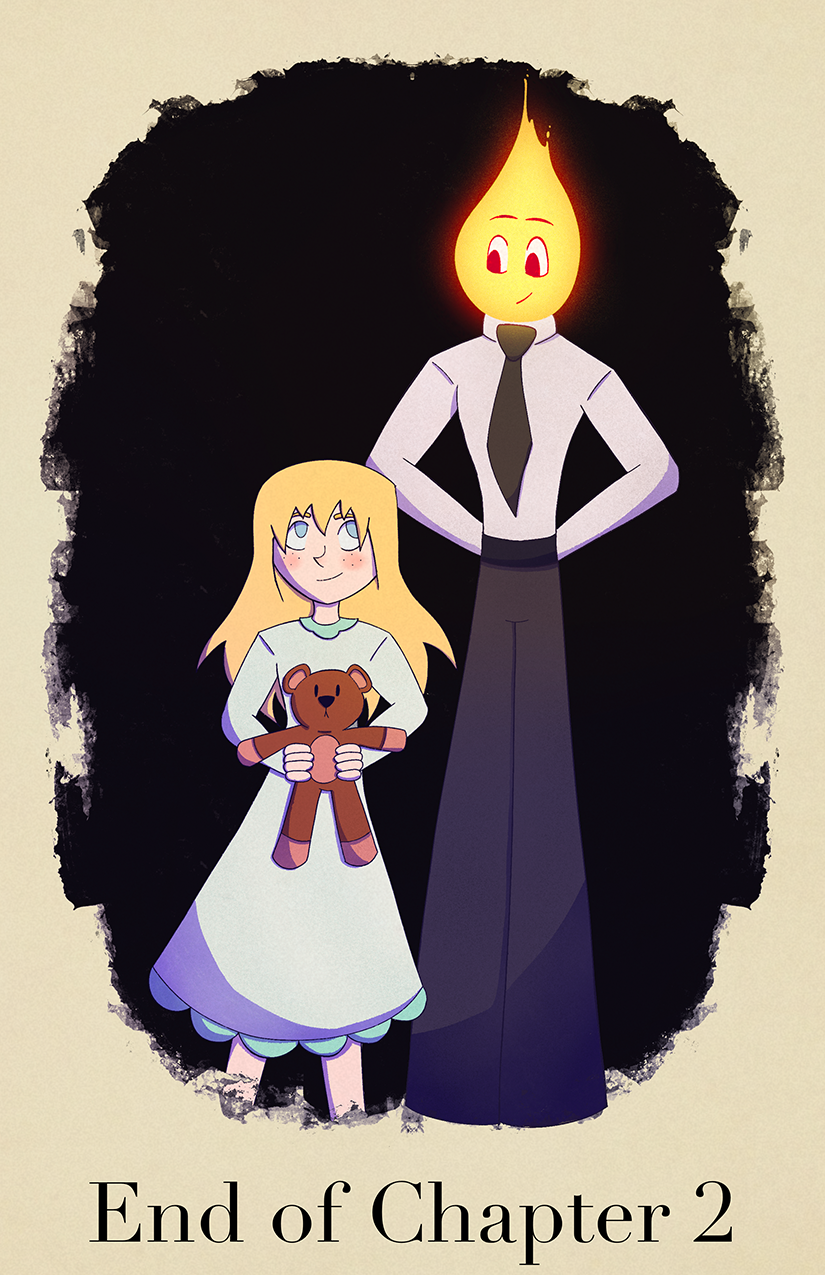 This is endcard is actually a "Family Portrait". Teddy represents Alyssia's deceased mother, Littvin is her new father, and the lovely daughter in the middle :)