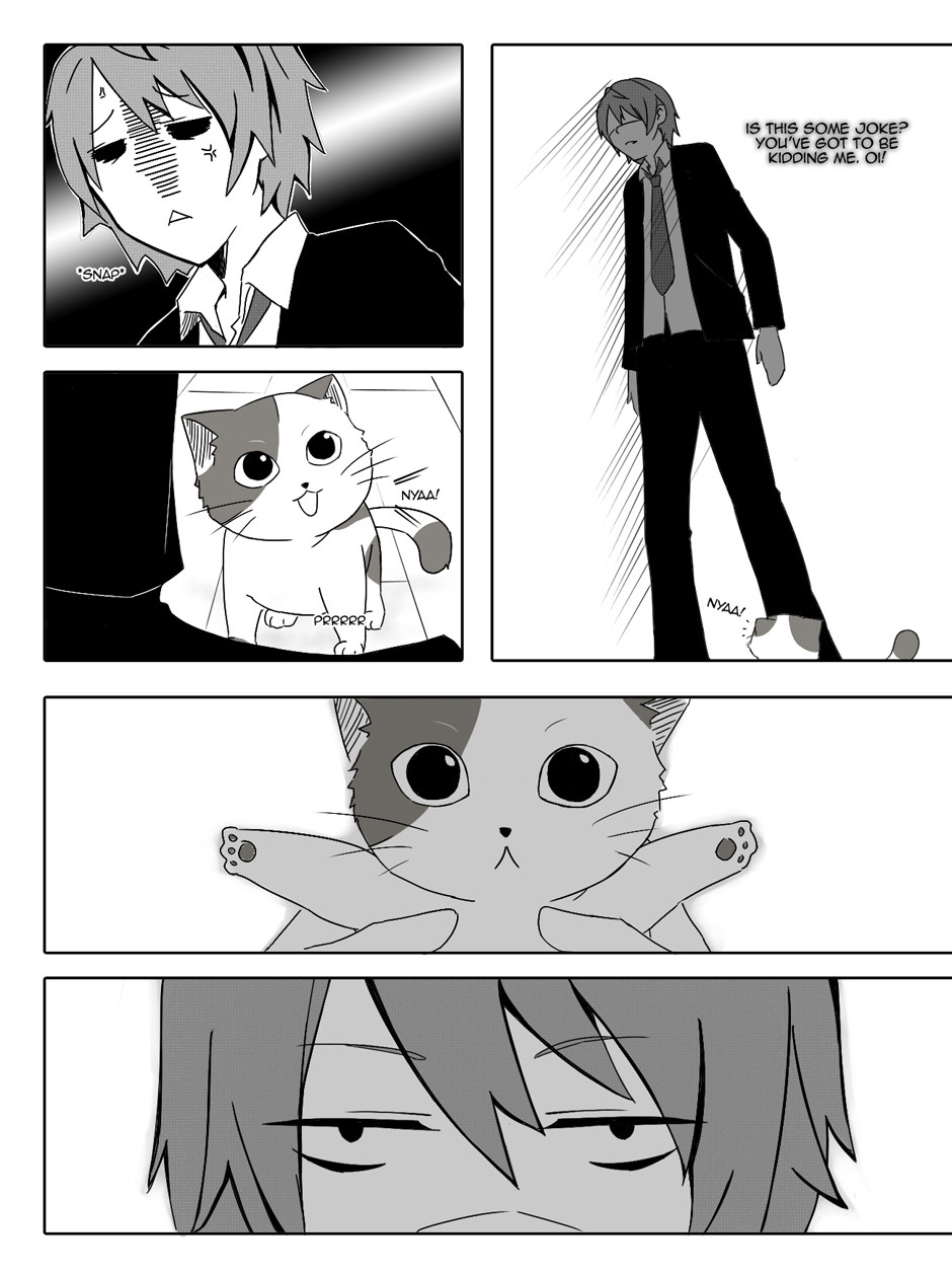 Shinji, a young man struggling with life's daily peers meets his match after encountering a stray cat on his way home from work. He rescues the cat from the rain with the intention of putting it back after the rain stops. But little does he know that the tiny feline might have actually saved him instead.