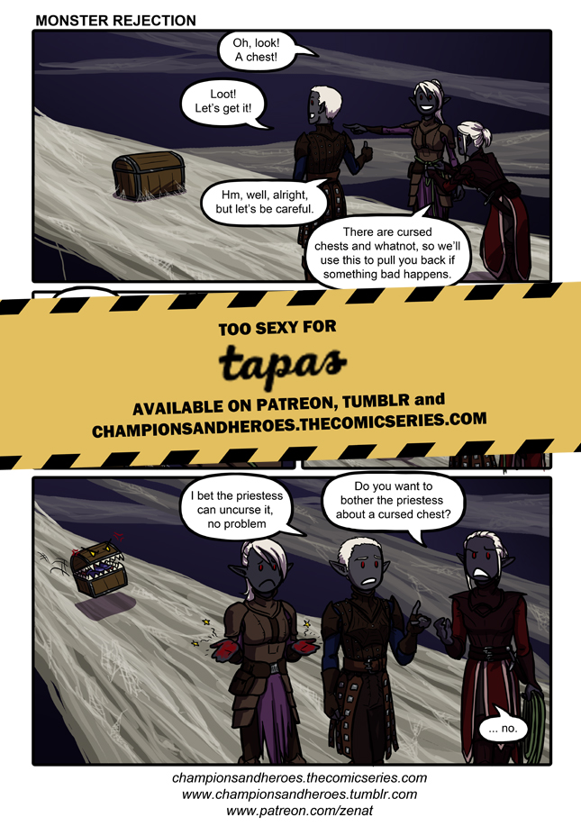 Three abysmal arcane knowledge checks later, it was evident that not a single one of them had ever heard of such a thing as a mimic and even when the chest attempted (and failed) to attack them... they concluded it was indeed a cursed chest and walked away. Because mimics have a movement speed half of that of a drow they made their unwitting escape at a casual pace. The total loss was 1 hit point and the appearance of competence.