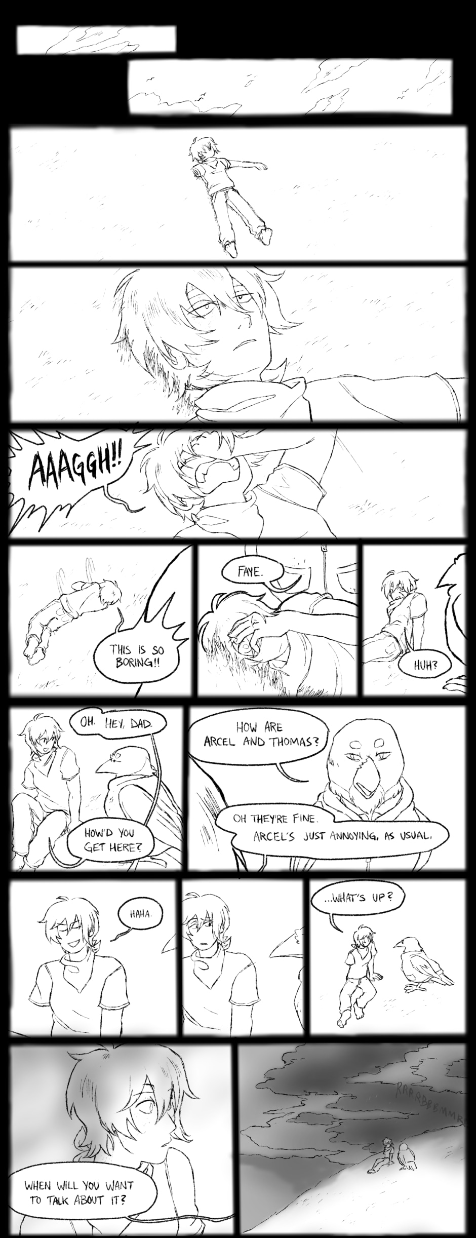 Faye is a human living in the two centuries post-flood era with her adoptive Avian family. Due to the still eclectic state of the world, she works eclectic jobs, taking requests, offers, and challenges for mostly anything you can throw at her, as long as it isn't humiliating, and most importantly, as long as it pays.