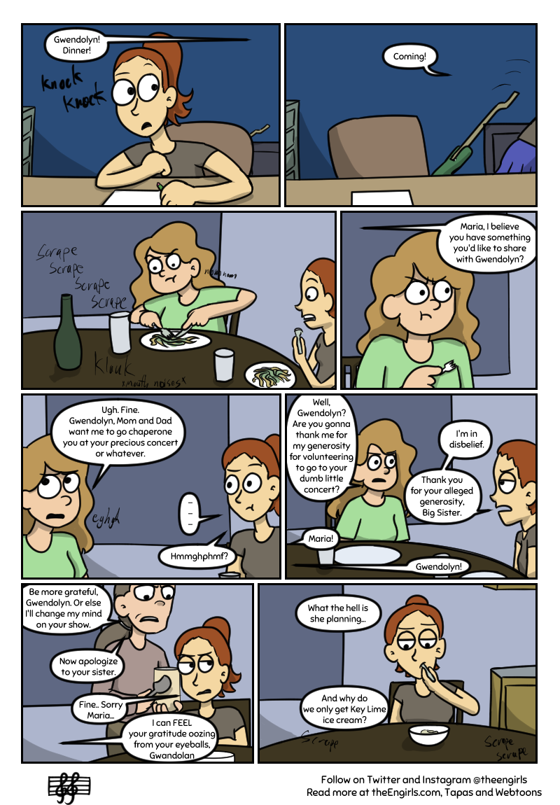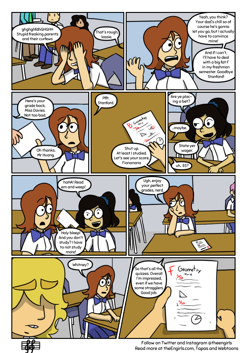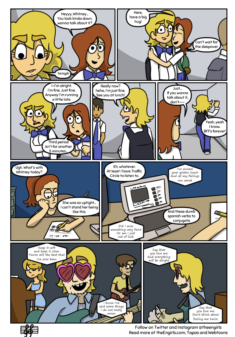 A story about three girls - Whitney, Gwen, and Fiona - and their adventures as the high school pop-punk band The Engirls (good luck trying to pronounce that). Now rebranded as The Middle, read on as the girls go to shows, write music together, and hang out while dealing with annoying rivals, depression, and crippling stage-fright!