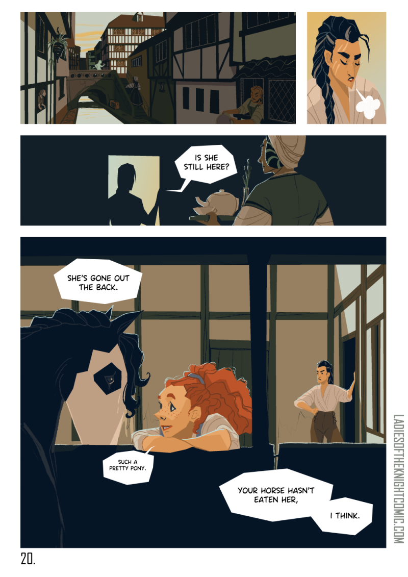 Serafina is the best knight in the league, almost, and she's doing just fine thanks, too bad others don't agree and saddle her with an enthusiastic, but wholey unsuited squire. With some appearances from glamerous rivals, moody horses, exasparated wives and one delightful BFF
