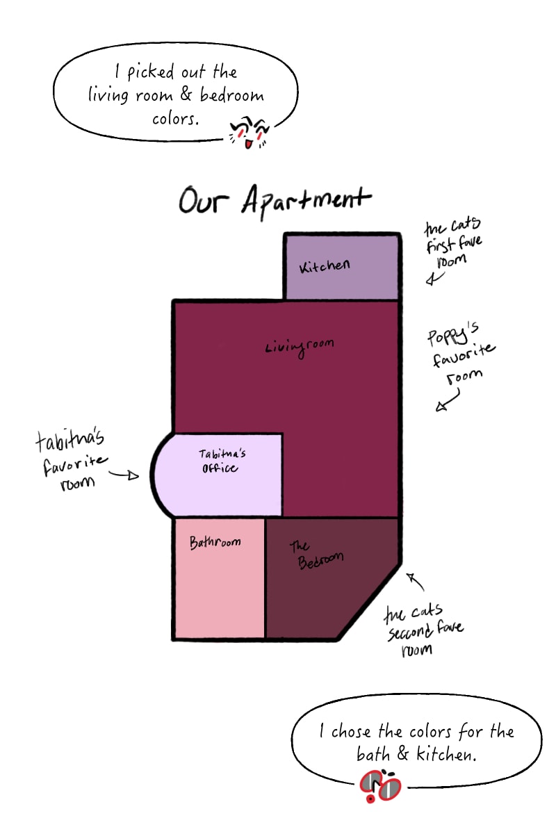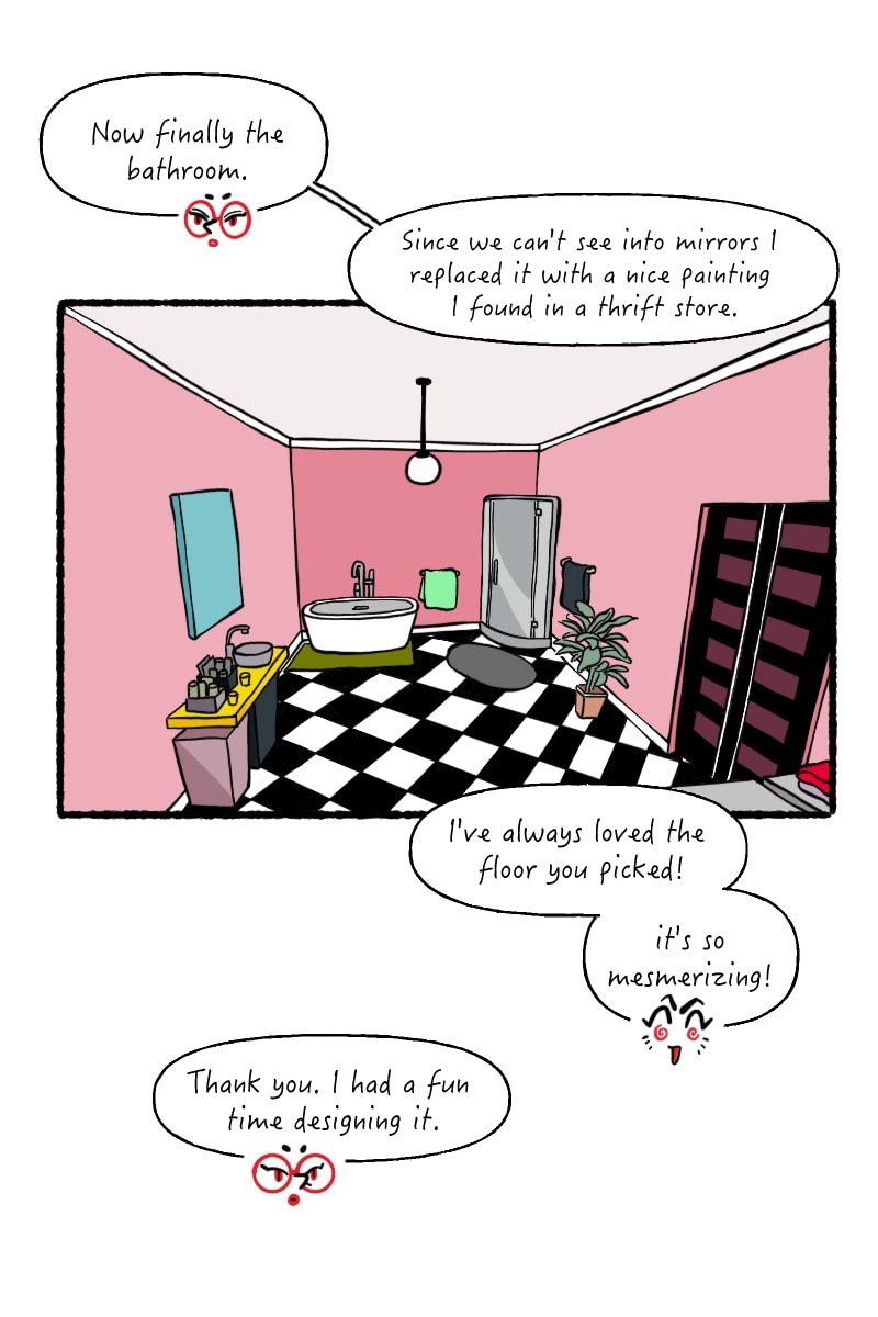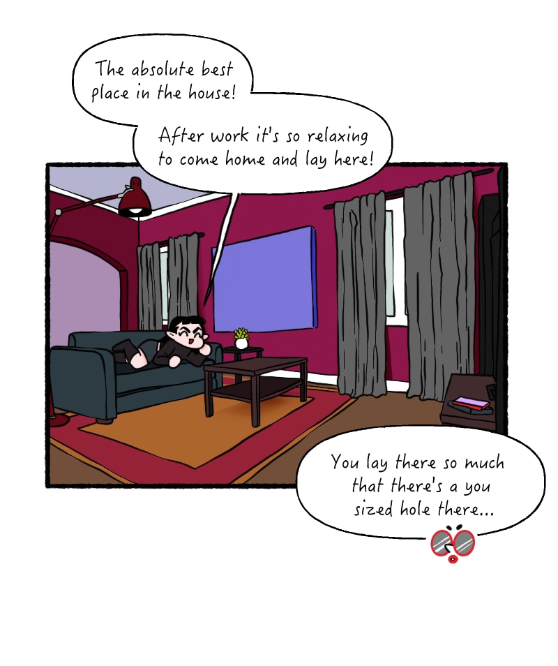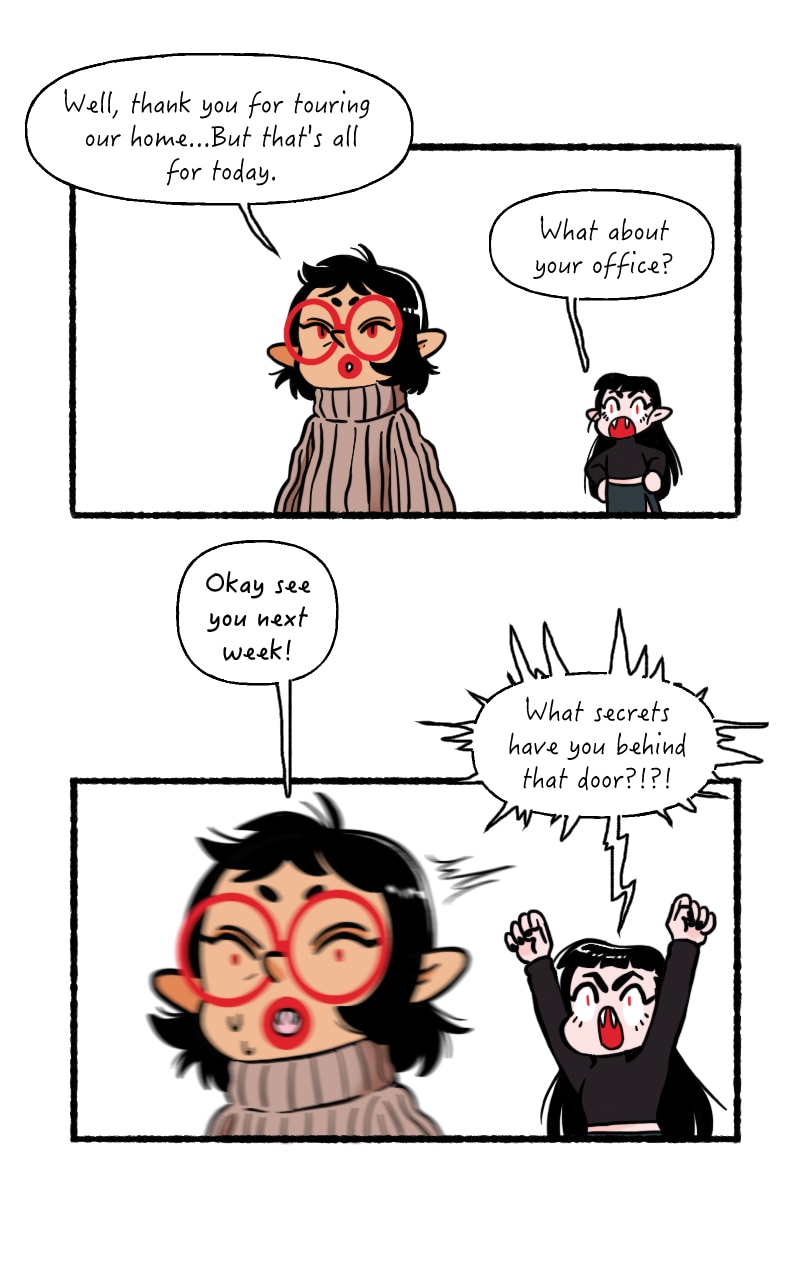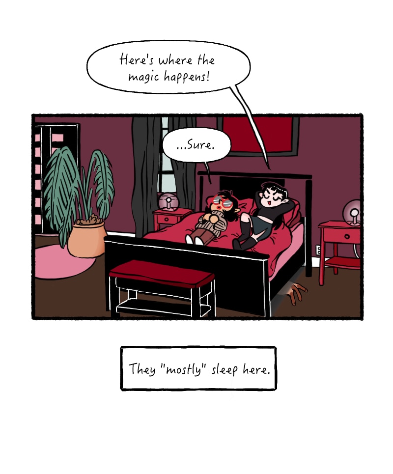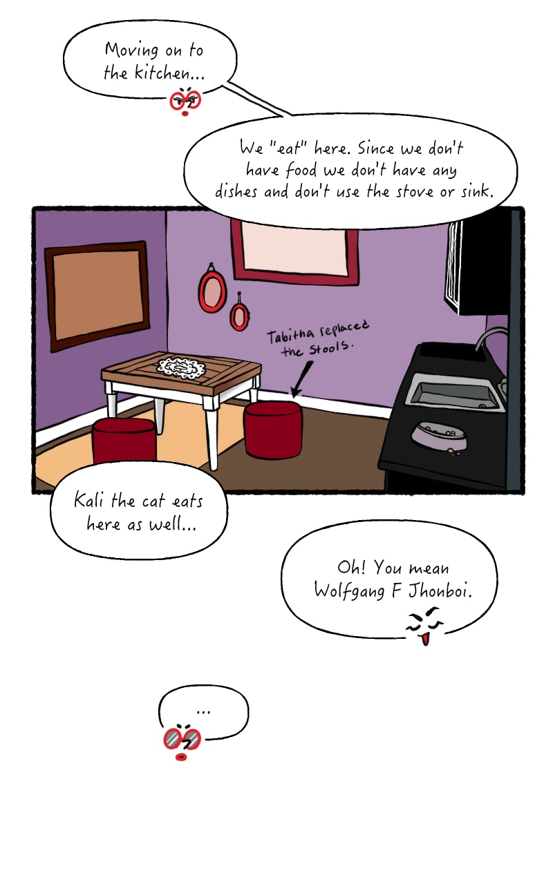 It is hard to remember the order I uploaded these episodes on webtoons, but it's kinda fun. Like hitting shuffle on a playlist ha ha! I made this episode and then was immediately like I want to change their living room...