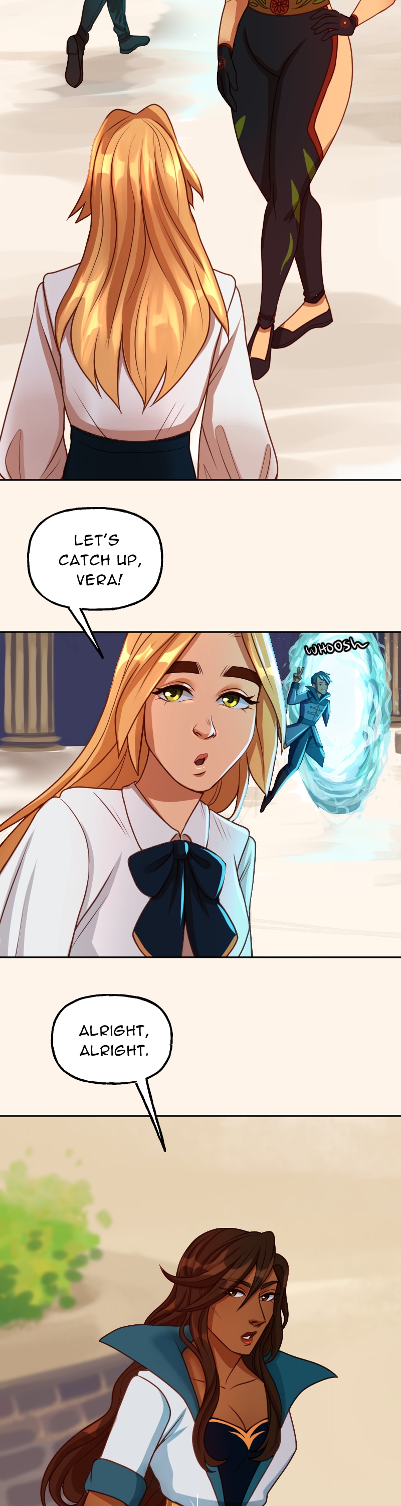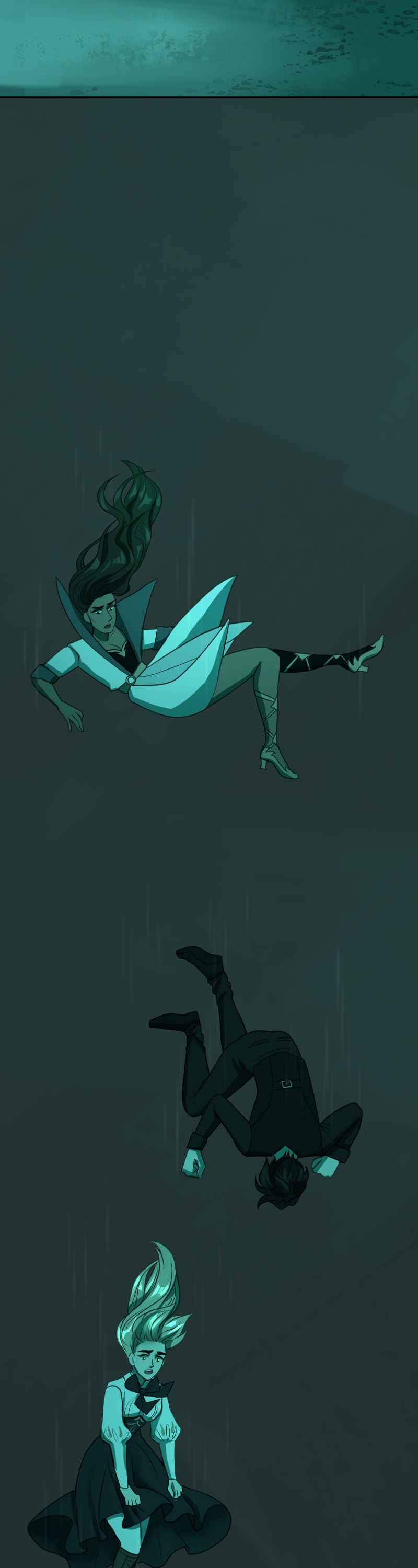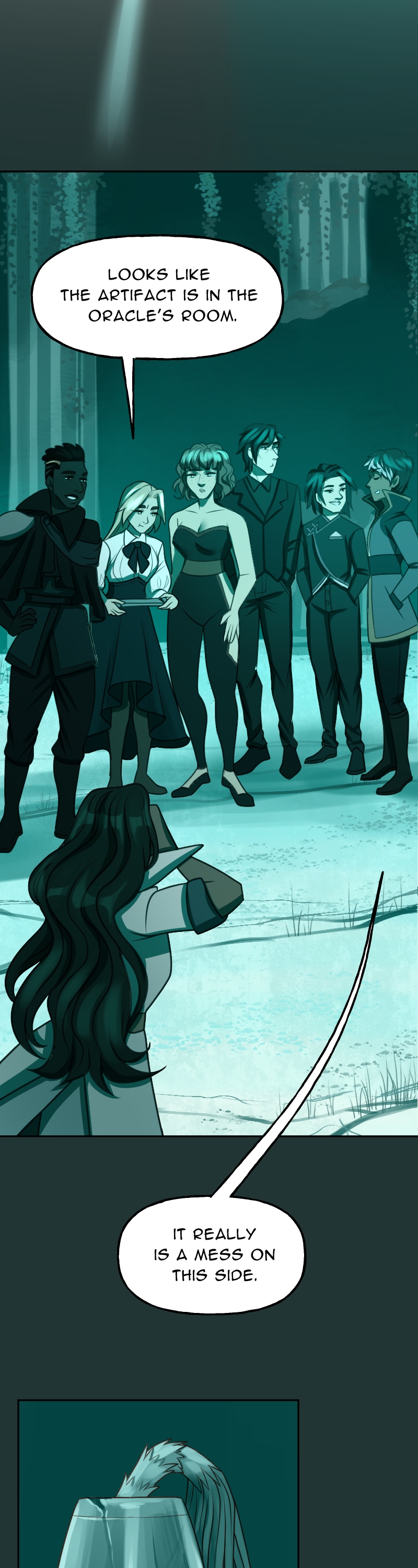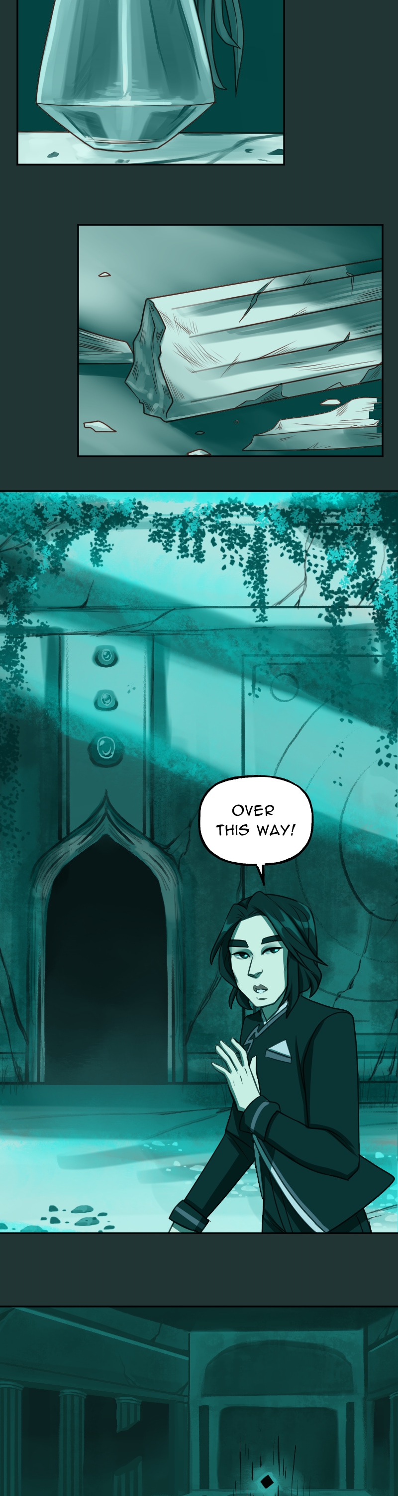 I just can't get over how good the art is and how much I like this art style. And the DESIGNS- they're so stunning, it's too much. I can't handle such utter perfection. And the way the color scheme completely changes when they go through the rift really sets the mood. I love this comic so much and I'm very excited to read more.(sorry long comment)