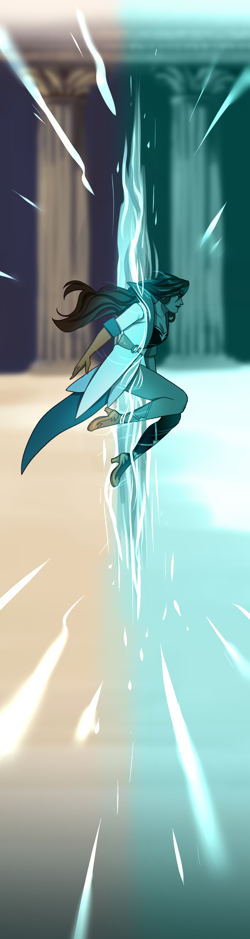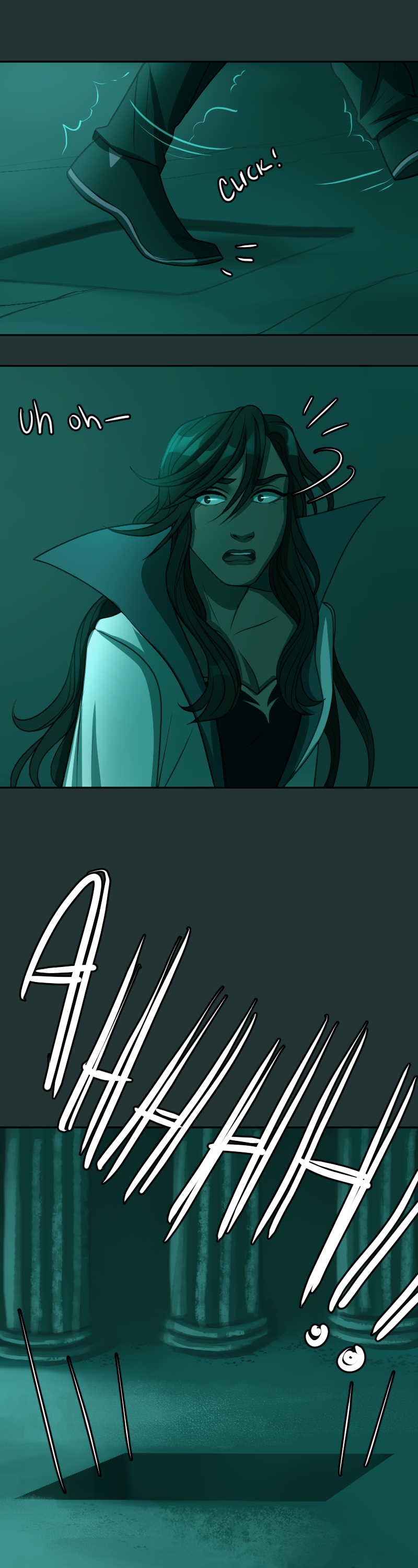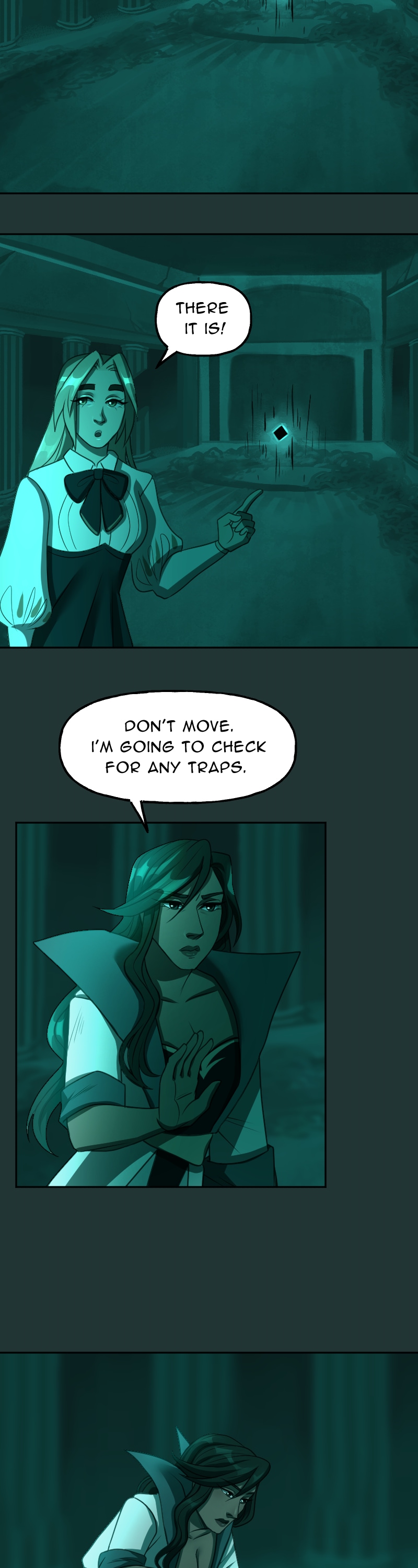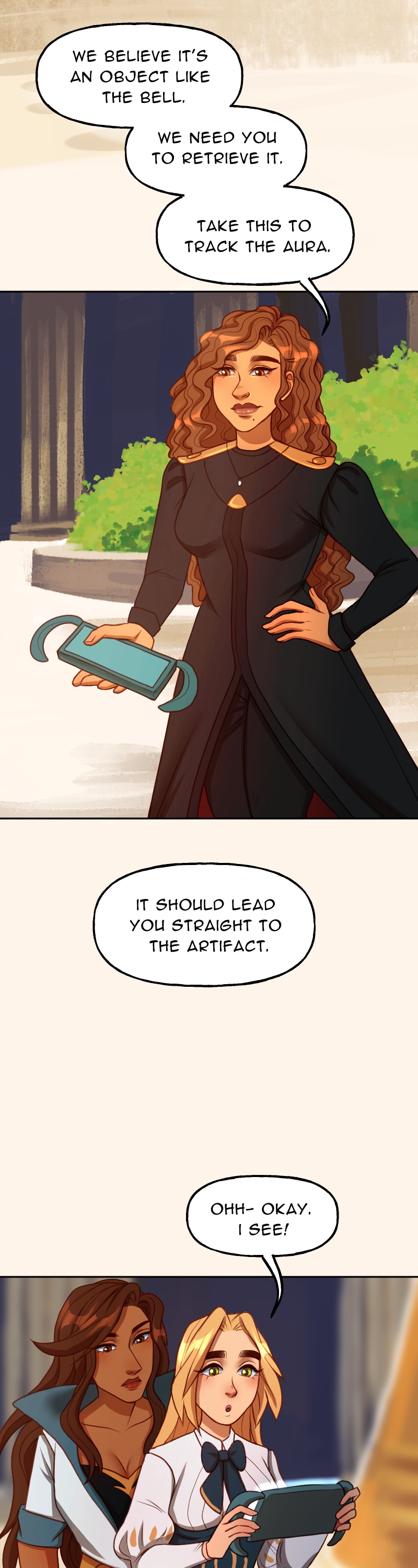 I just can't get over how good the art is and how much I like this art style. And the DESIGNS- they're so stunning, it's too much. I can't handle such utter perfection. And the way the color scheme completely changes when they go through the rift really sets the mood. I love this comic so much and I'm very excited to read more.(sorry long comment)