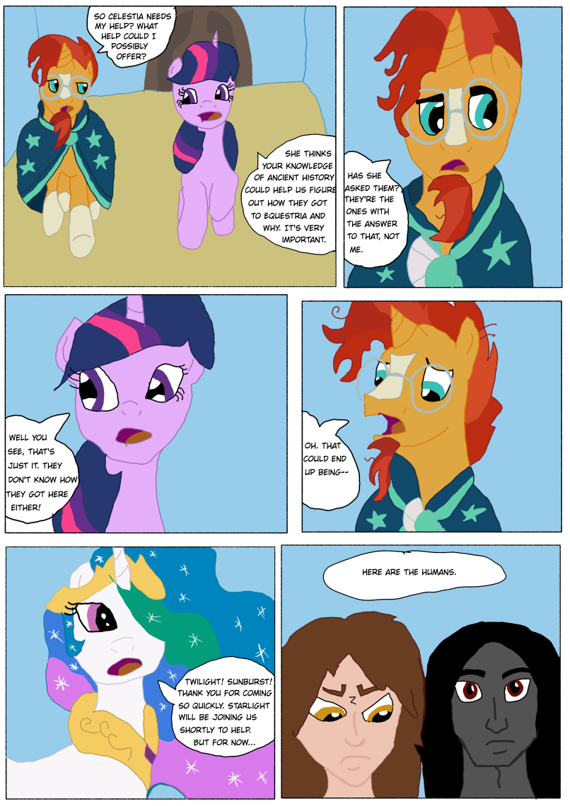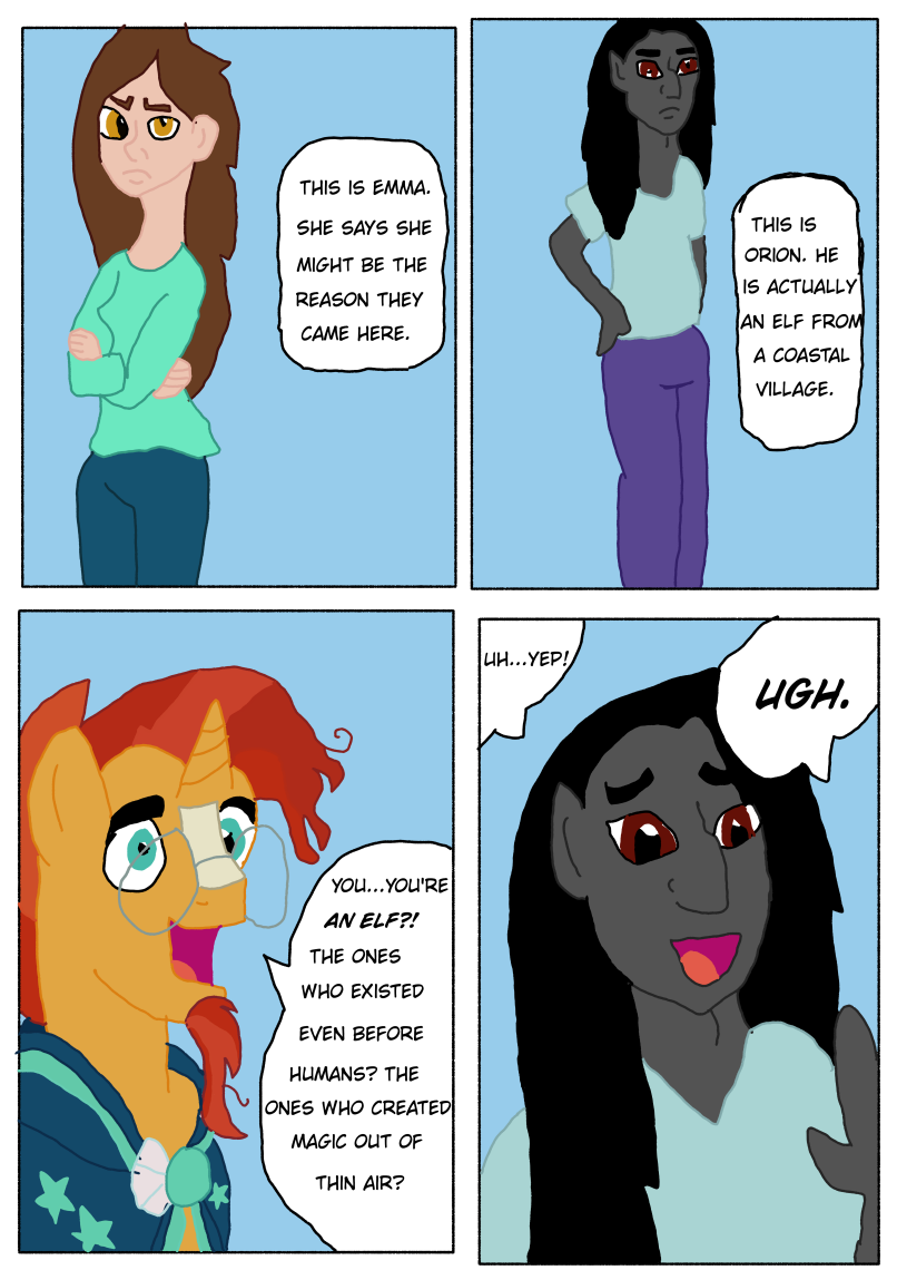 A fresh take on MLP with a dash of other fandoms. Not a kids comic, but not inappropriate either. Celestia discovers a human princess and an elven prince in her castle. She calls for the aid of Sunburst, Twilight, and Starlight, hoping they might know how these two got to Equestria, and what to do with them. Full of adventure, suspense, and a dash of romance, Wildfire is sure to captivate you.