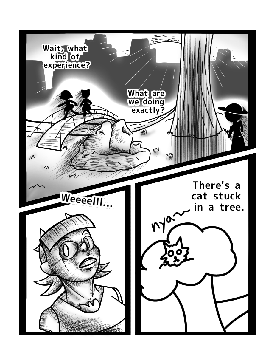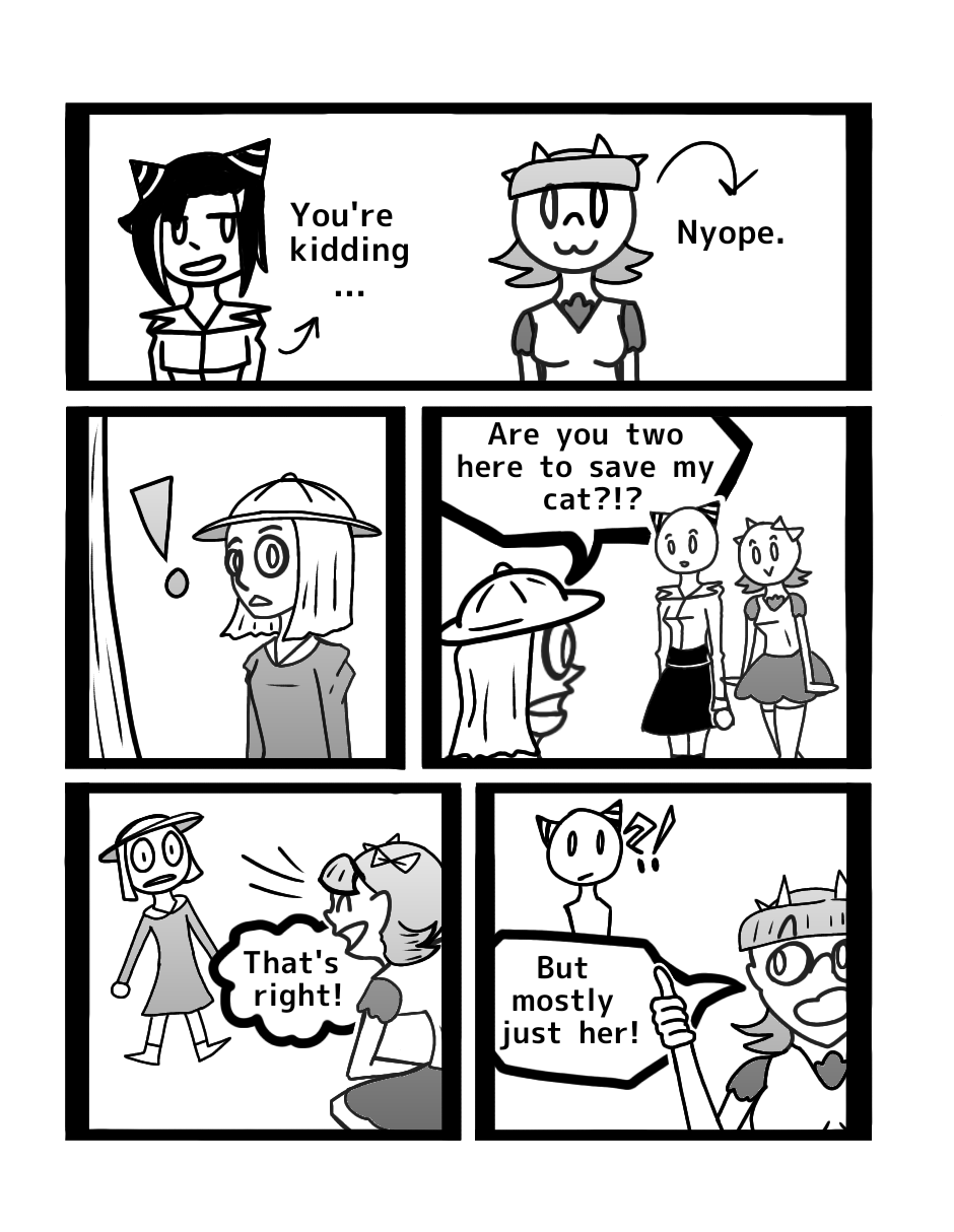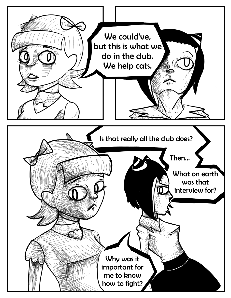 Whaaat? Color in the cover page?! Yes, I like Choko, so she gets a pink cover page. Also backgrounds! I made backgrounds! And detail, so much detail! And look! A cat!