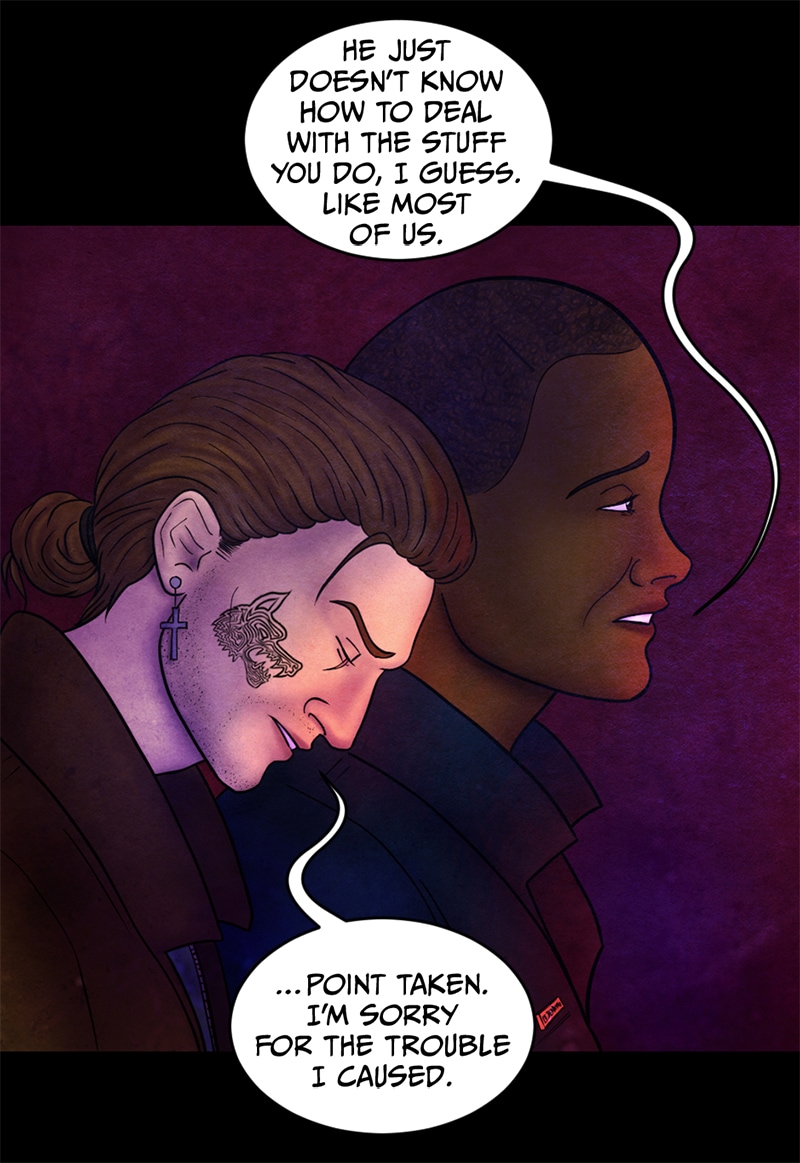 Adrian pauses, realizing that he definitely went too far: "...Point taken. I'm sorry for the trouble I caused".