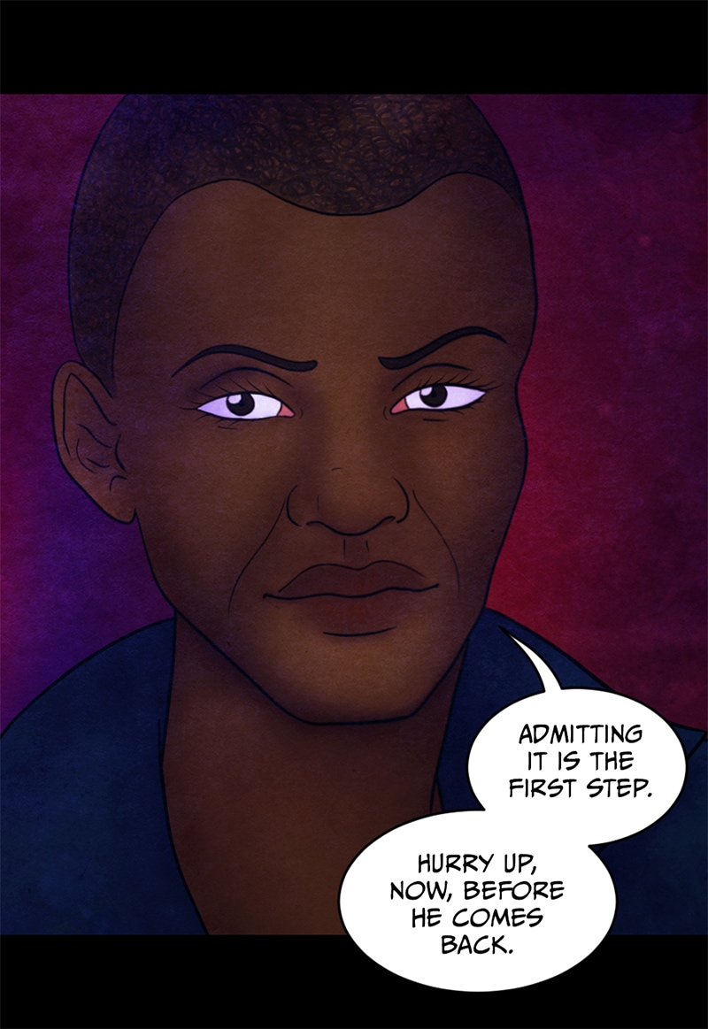 "Admitting it is the first step" says Aaliyah with a slightly mischievous smile "hurry up, now, before he comes back".