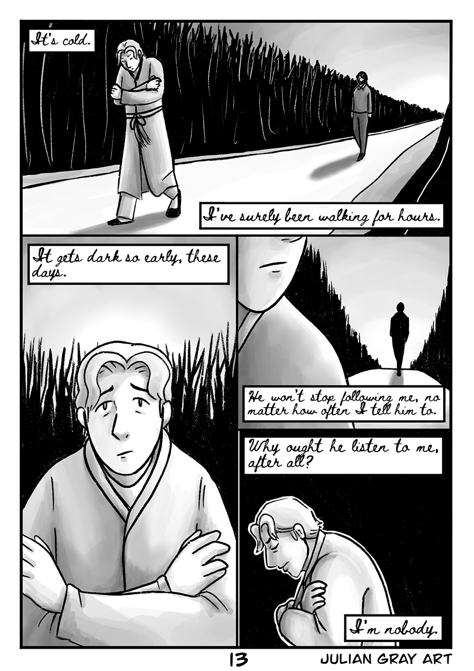 The Invalid’s Valet is a one-shot Victorian queer romance comic. Neurasthenia is the 19th century term for what is now known as Chronic Fatigue Syndrome/Myalgic Encephalopathy (CFS/ME), my own condition, and the comic was inspired by my own struggle with internalised ableism and depression. Please note there are themes of suicidal ideation in this comic.