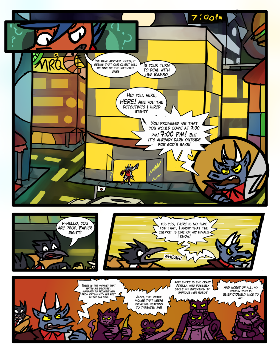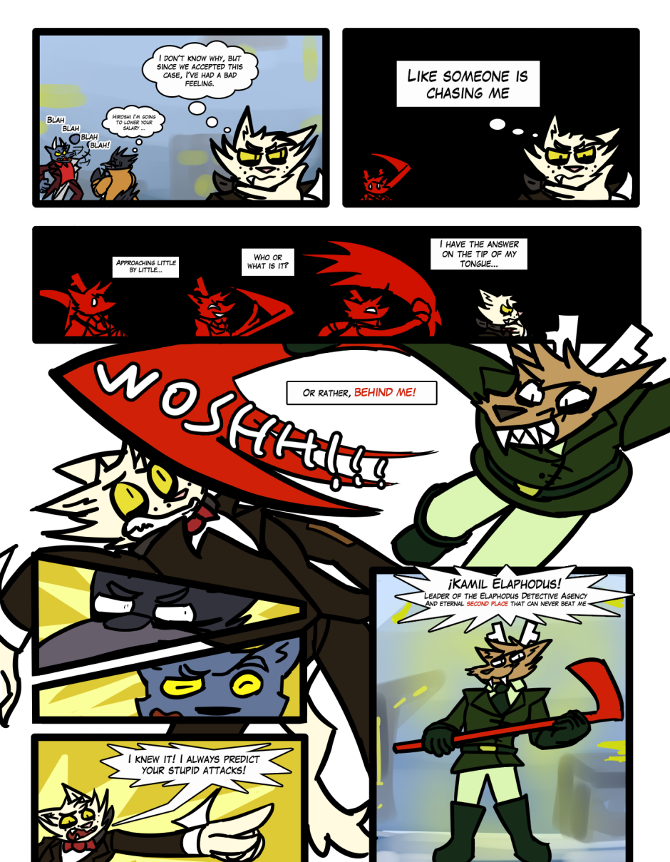 Webcomic that follows the misadventures of a detective agency in Alidrilo city, meet Rambo and Kittan the chaotic step-brothers that try to keep their city sane and safe.
