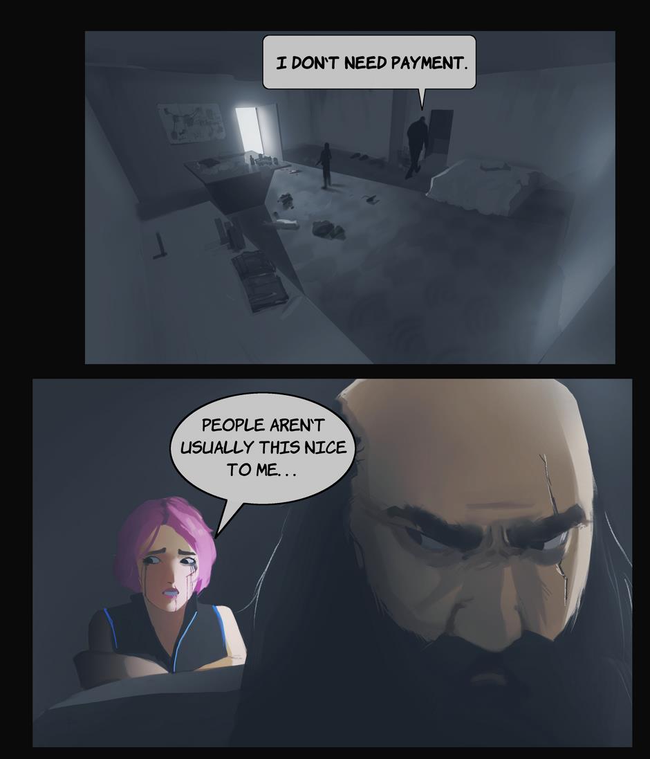The mysterious girl thanks the old man that saved her.