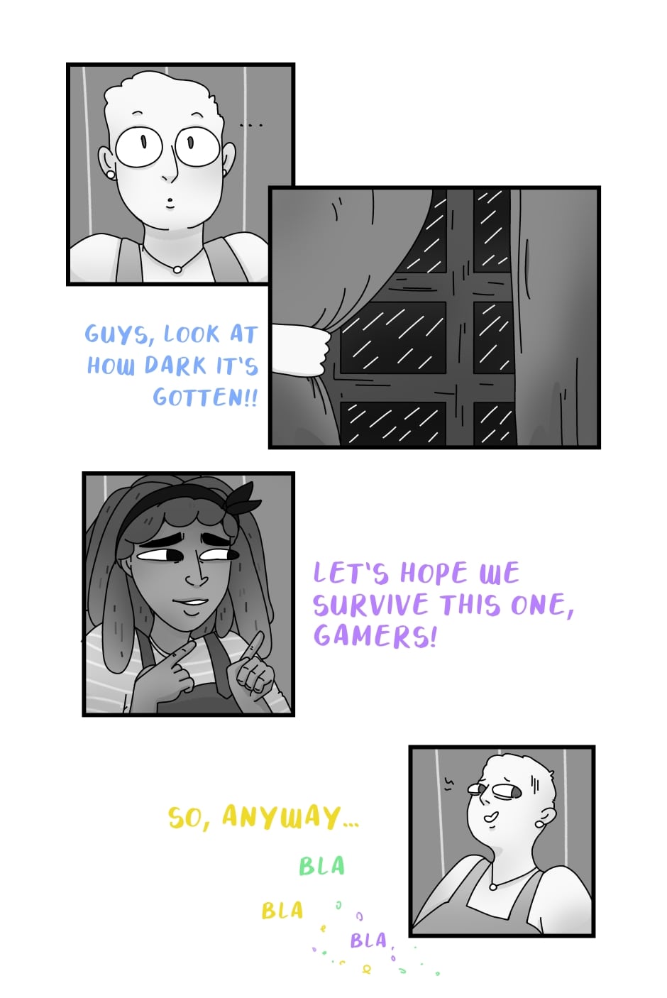 heads up: this webcomic contains strong language and (soon) some elements of horror, nothing too bad though. i'll put content warnings in the tags of episodes in which possibly triggering things are discussed/shown.