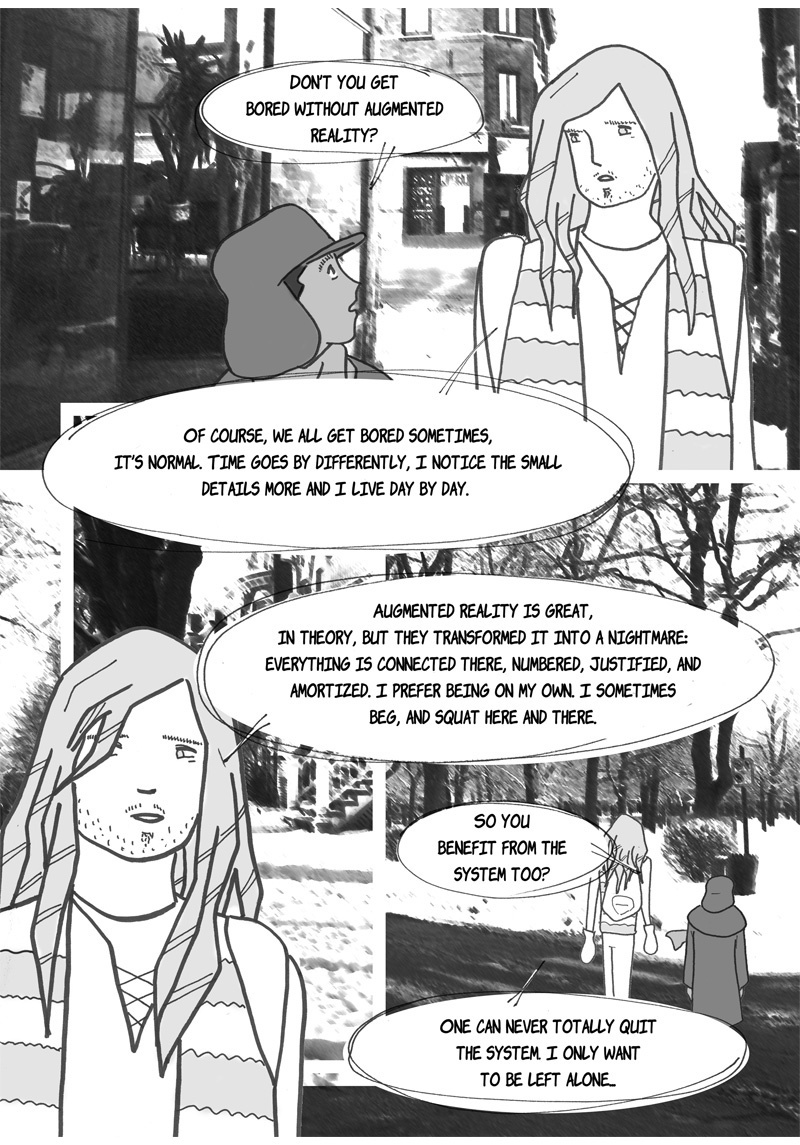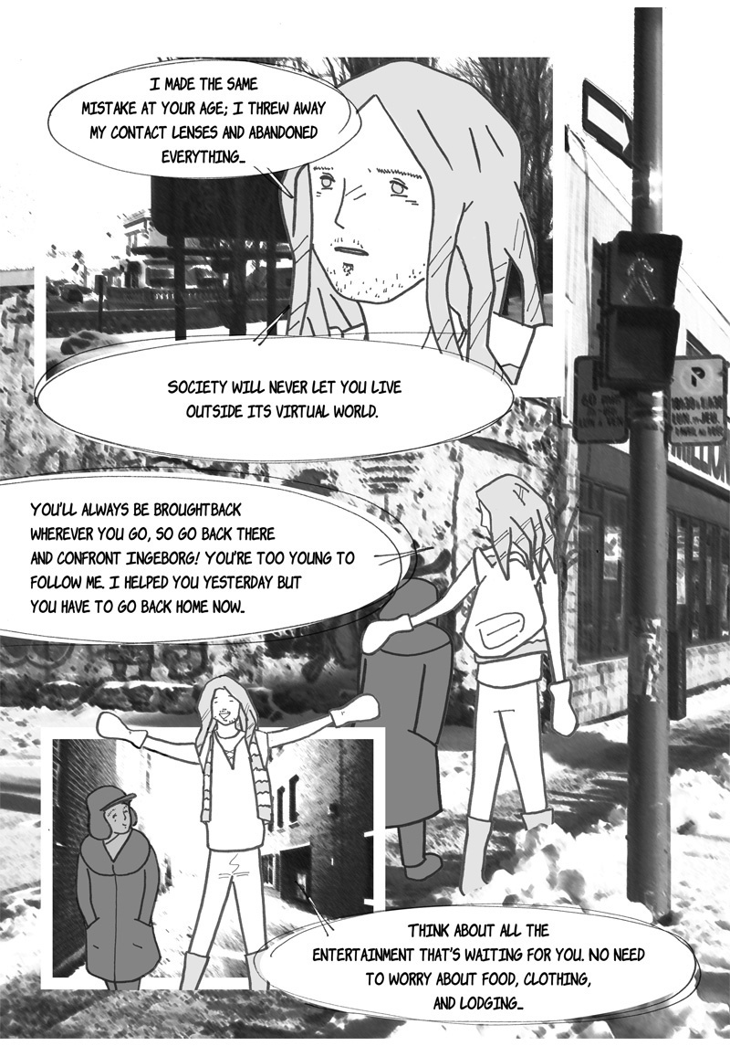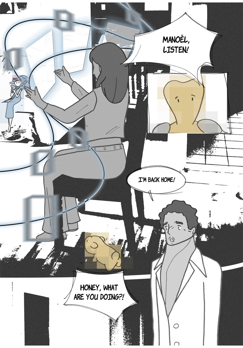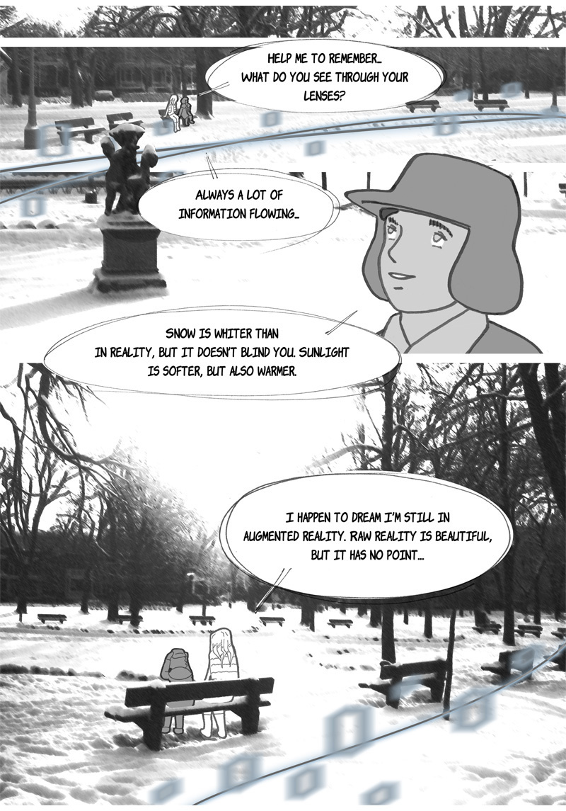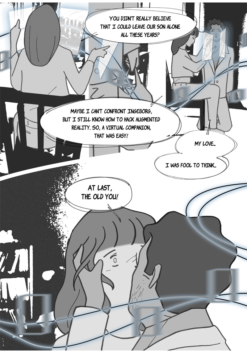 “Omniscience” is a sci-fi manga. Its story is set in a hypothetical future where augmented reality has invaded our daily lives, thanks to contact lenses superimposing virtual characters into reality. One of these characters, Ingeborg, is particularly popular; she is like a second mother for generations of children, devoted and insightful. She is, however, disavowed by more and more of her subscribers – authorities suspecting her of being more harmful than beneficial to their well-being. This is what two teenagers are going to discover when they help a young fellow from their boarding school to find his parents, who abandoned him a few years earlier for an unknown reason…
