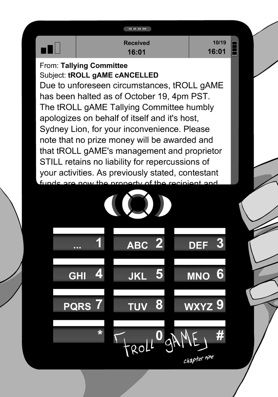 Trevor Downs has trolled a girl to death and finds himself invited to participate in 「tROLL gAME」 a month long competition where various types of trolling gains points and the one with the most points at the end of the month will win $10Million from the competition's host, Sydney Lion.