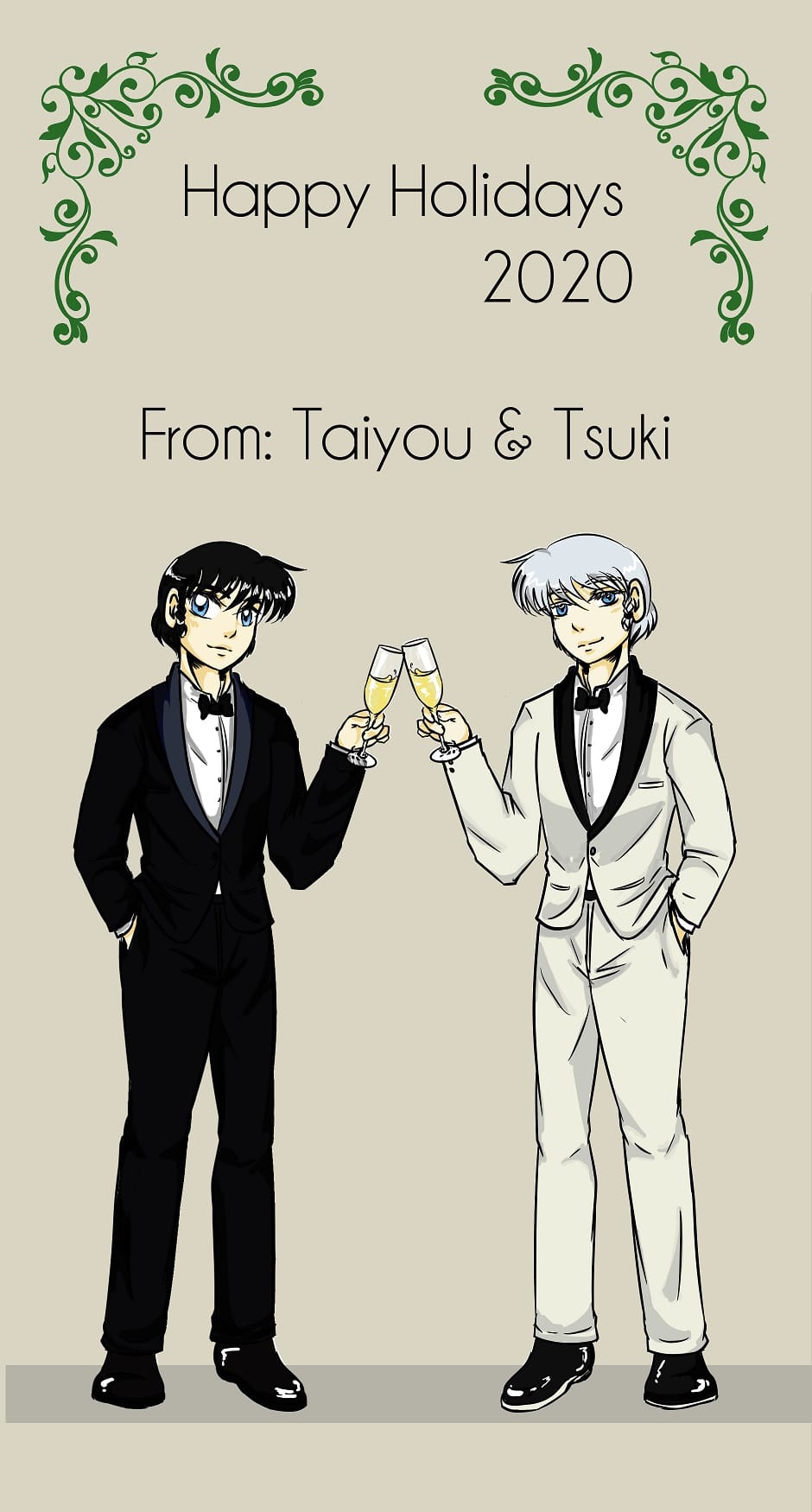 As I've mentioned before, Bitter Honey is the creator of this beautiful story, and I'm the one who draws it, but this time we both made little drawings of our boys. It's something like 'at the party with the staff and then at the family party'