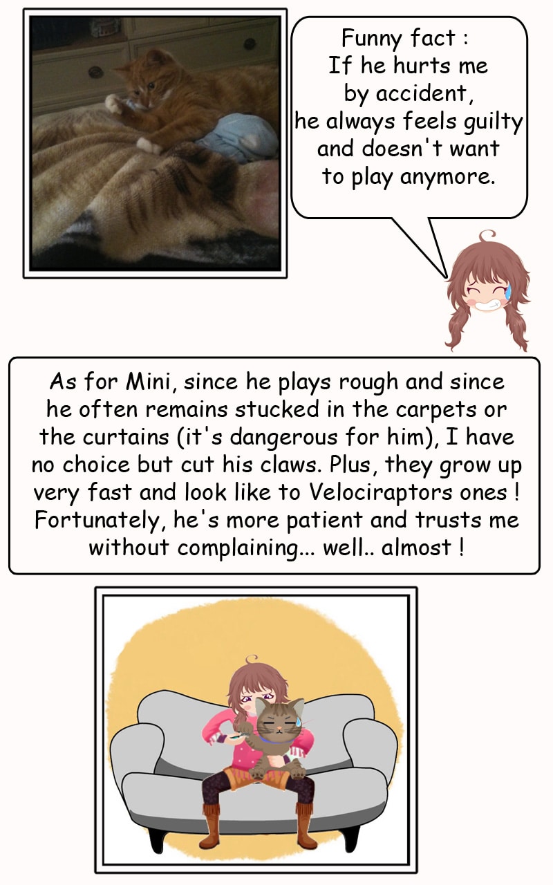 Here is the story of the daily life of my cats ! Follow their adventures in our tough life in Canada, their habits, their own particularities, and the many discussions or interactions with their mom.... I mean ME ! ^o^