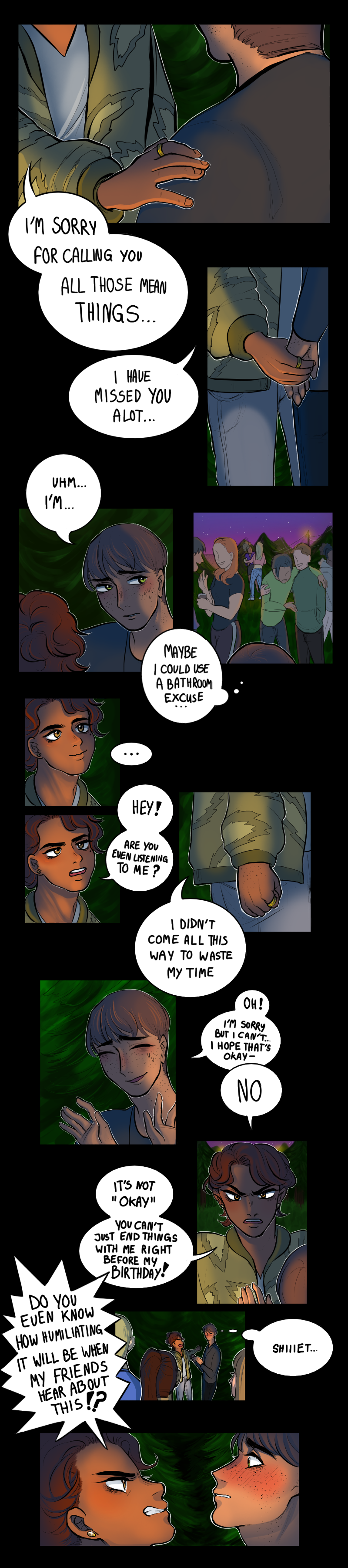 I have decided to use my own handwriting for my comic, since it feels more "original?" if you can say that. I'm still very embarrassed by my handwriting, but I think it will help me become more comfortable with it! I hope you wonderful readers can actually read what it says though, haha