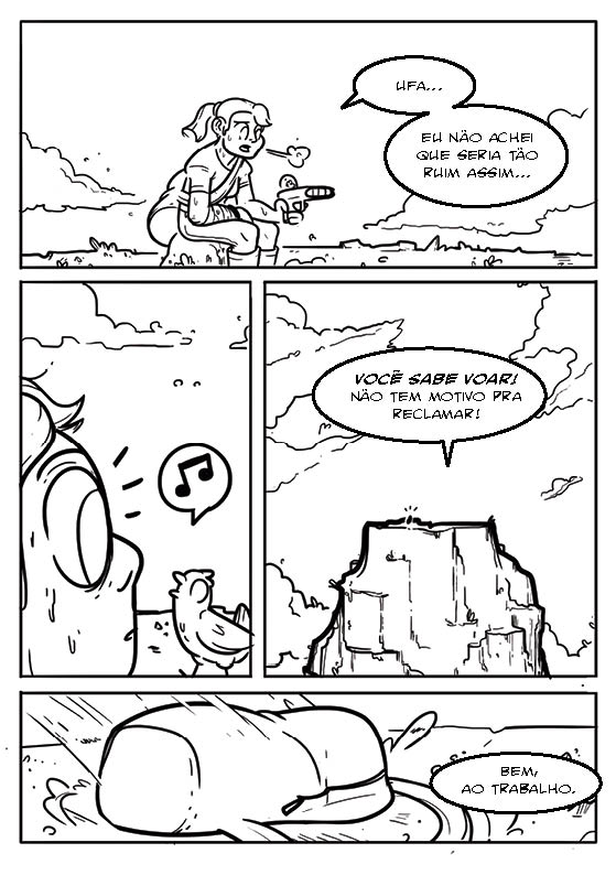 Nádia sai em busca de um lugar alto e seguro pra colocar seu rebatedor de sinal.