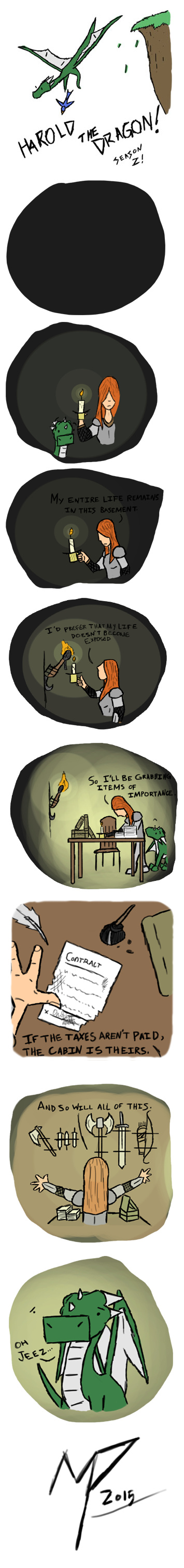 Harold the Dragon, a fantasy series following a small green dragon and his close friend Blue along with a female warrior named Olivia and soon to be more in the mere future. Action, adventure, and of course, cute humor. Harold the Dragon strives to be on many people's reading lists!
