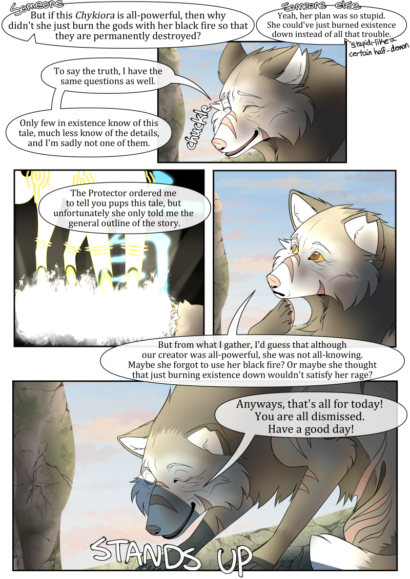 Billions of years after the human era, the world is now plagued by demons created by the forgotten Goddess of Creation, tasked to bring suffering to the living. Chykiora, a young wolf outcasted by her Clan for suspicions of being a half-demon, finds out that she may be more than she imagined. Not only so, but that the close ones around her may share a closer past to her than she ever imagined. [Updates every 10 days]
