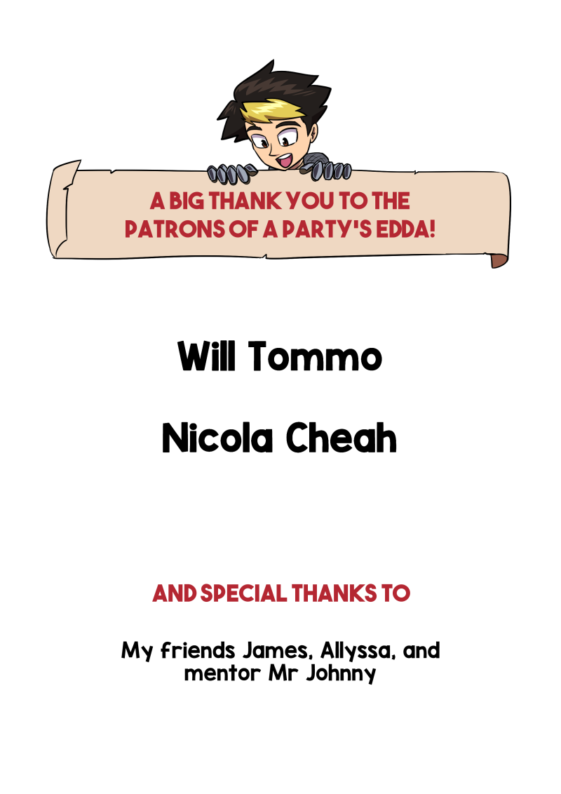 Thank you for reading up to A Party's Edda first climax, and I hope you will stay for many more to come! To Chapter 5 we go... after a week break! If you'd like your name to be on the end of every chapter, do check out my Patreon!