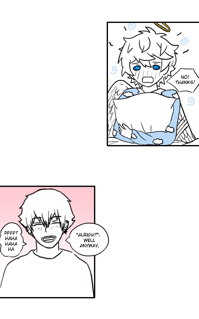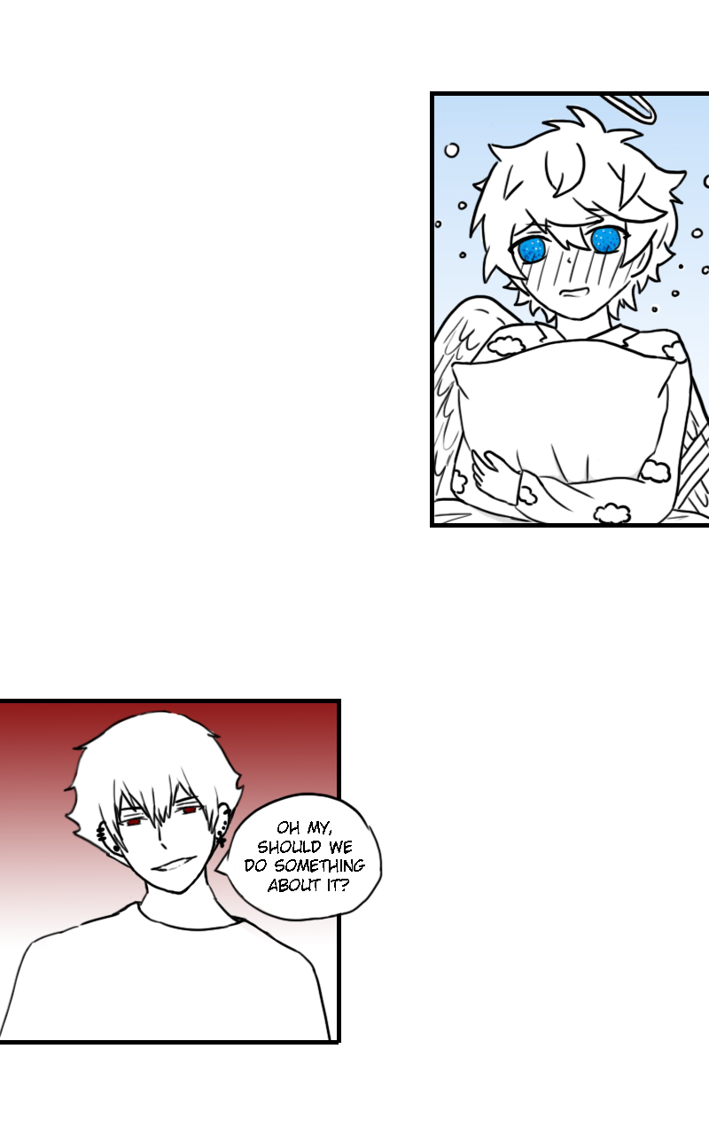 It’s a BL story about an angel who fell from heaven, that then meets a devil. They start to get along and realize that the 2 sides are not as bad as thought they were. They therefore try to get the 2 worlds to Collide with each other, but God has no means to accept the idea and has “other plans” in offer. Read to find out what happens next!