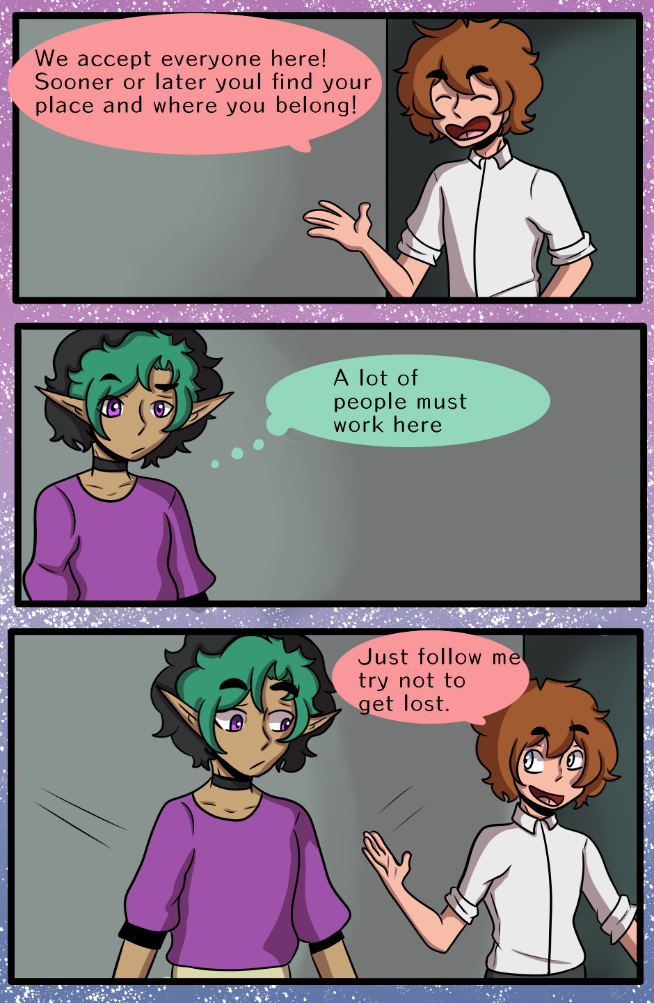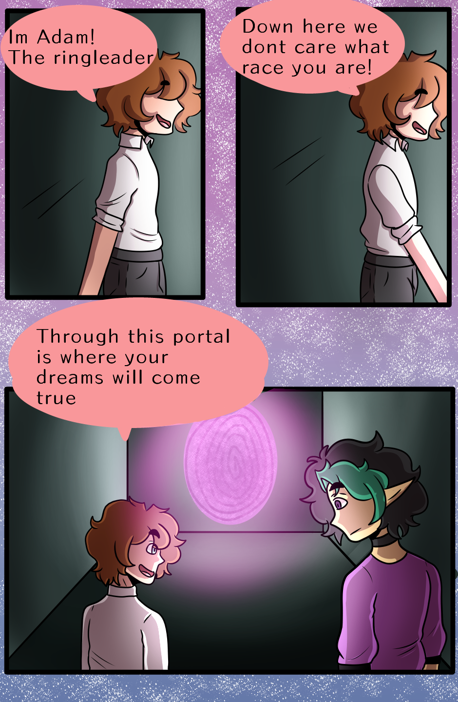 A world where being part of the LGBTQ+ is frowned upon and punishable by death The elf run away from his family and joins the run aways circus.