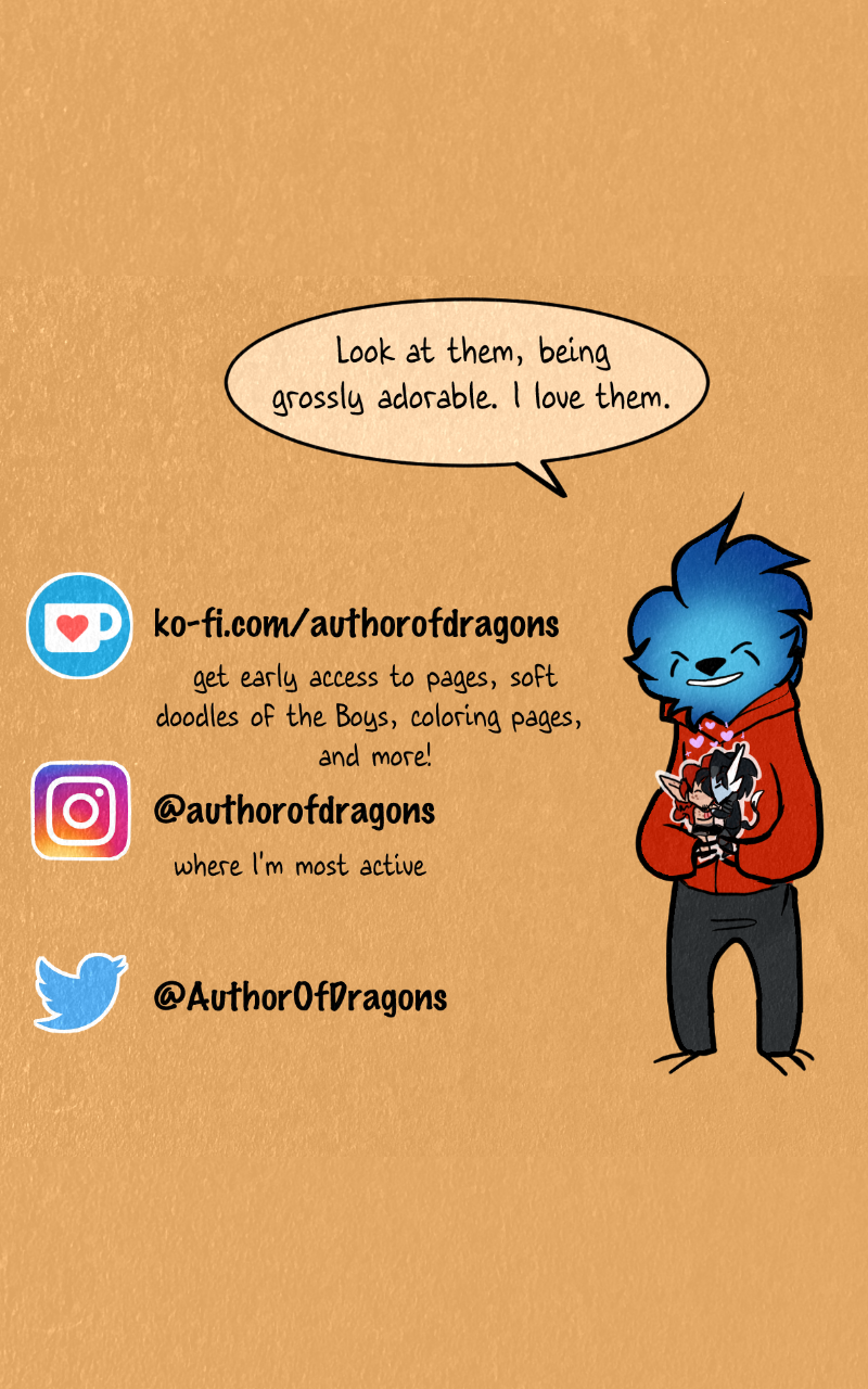 Bonehill, an intellectual who’s too tired to be smart, and Zerako, a sweetheart pyromaniac, are aroace husbands who find themselves forced out of their home city (which they wanted, anyway) and take the opportunity to go off on an adventure. Will they get more than they bargained for, or will the people around them? (yes)