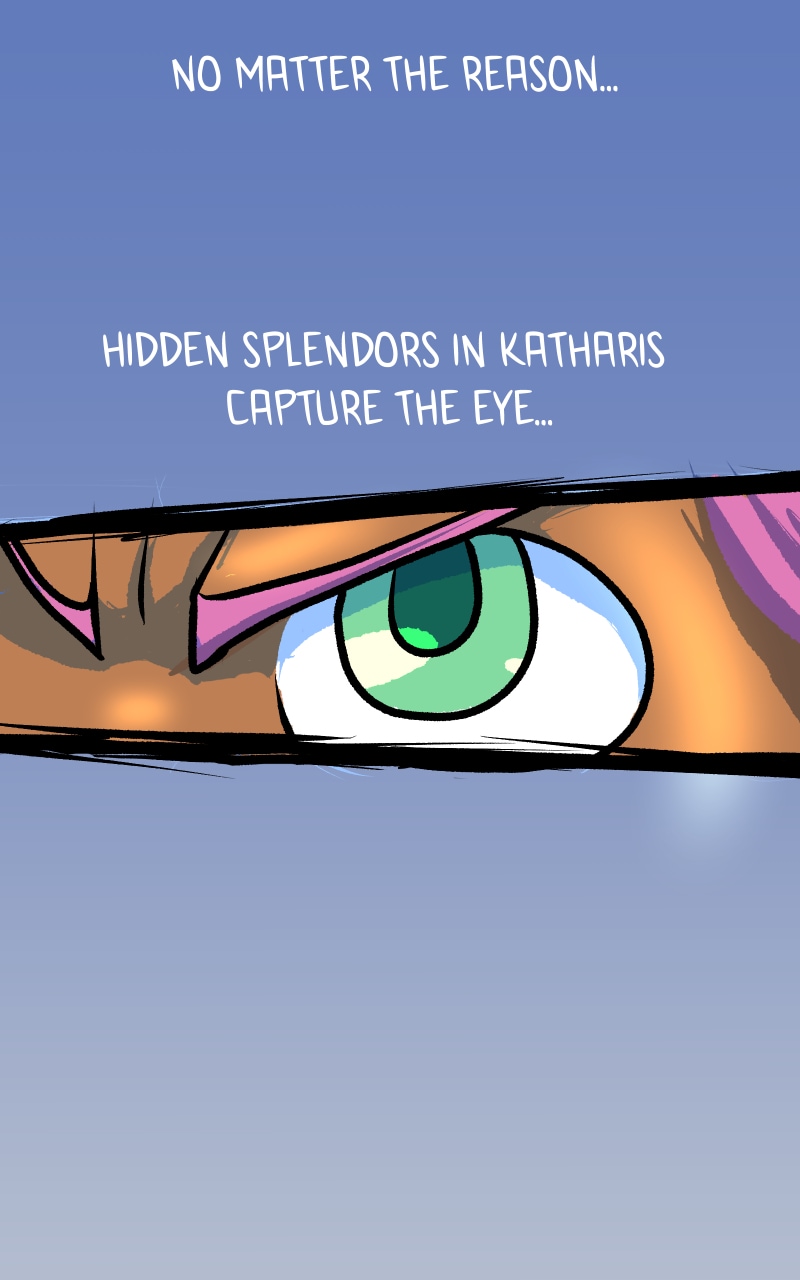 The world of Katharis sprawls for what seems to be endless miles filled with vibrant, captivating landscapes and bustling cities. All of this serves as a siren's calls for yearning adventurers like Bibi. No matter the reason, hidden splendors in Katharis capture the eye and beckons an ambitious group of misfits.