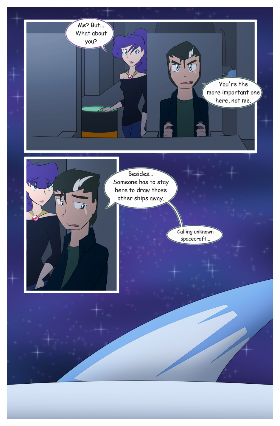 Another day, another page! We'll meet the pilot of this snazzy ship tomorrow ^^ This one has some more detail to it but still needs some work lol As soon as Book 1 is finished I'm going to take a crack at these pages and finally finish them up.